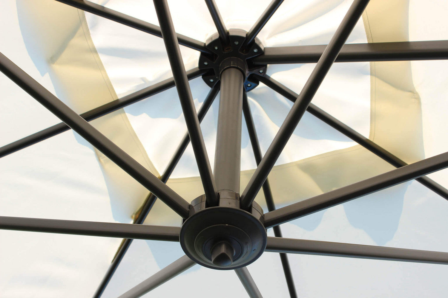 Parasol de jardin avec mât décentralisé en aluminium : élégance et fonctionnalité.