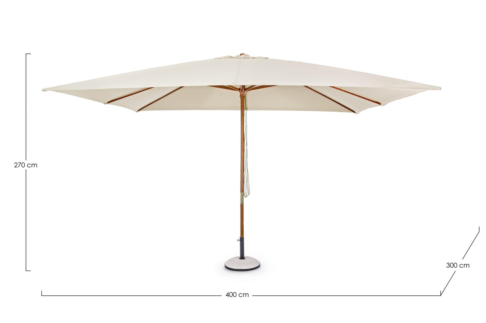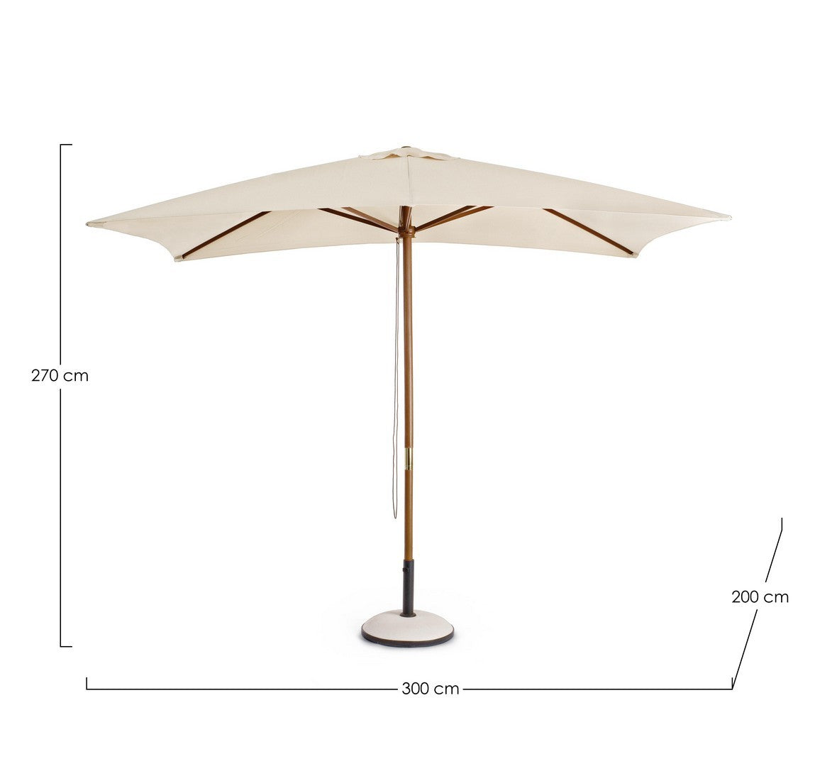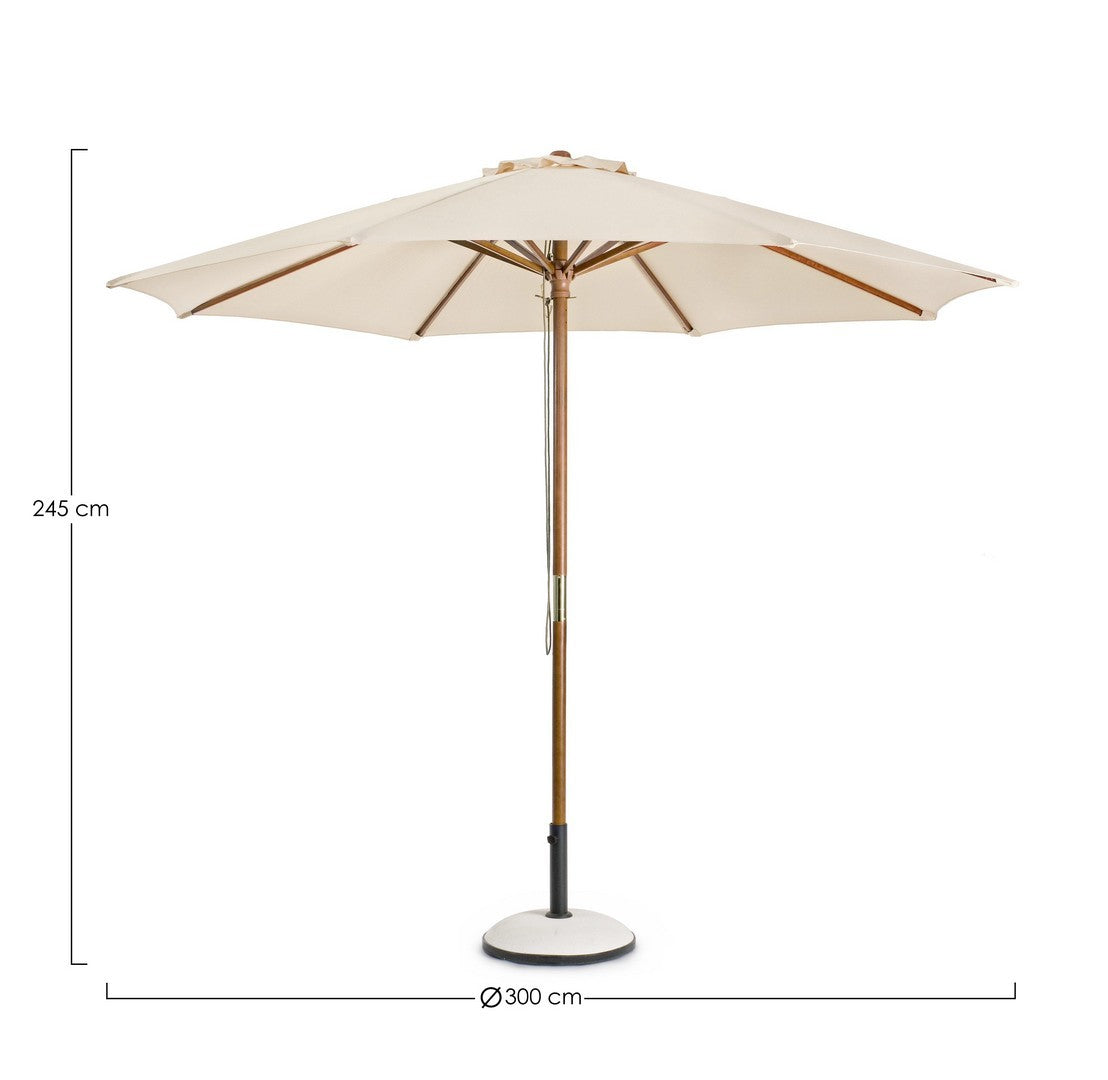 Le parapluie est équipé d'une poulie qui vous permet d'ouvrir et de fermer le parapluie facilement. La housse du parasol est de couleur naturelle et est en polyester d'une densité de 180 grammes par mètre carré. La housse est équipée d'une cheminée à vent qui permet à la brise de passer à travers le parasol sans causer de dommages ou de problèmes.