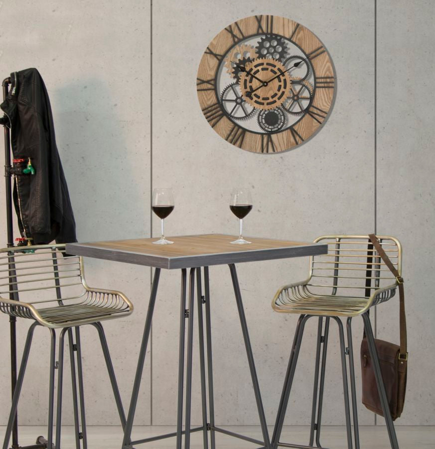 L'horloge murale à engrenages en fer et bois MDF est un meuble qui allie la robustesse du fer à la beauté chaleureuse du bois, créant un design industriel et contemporain.