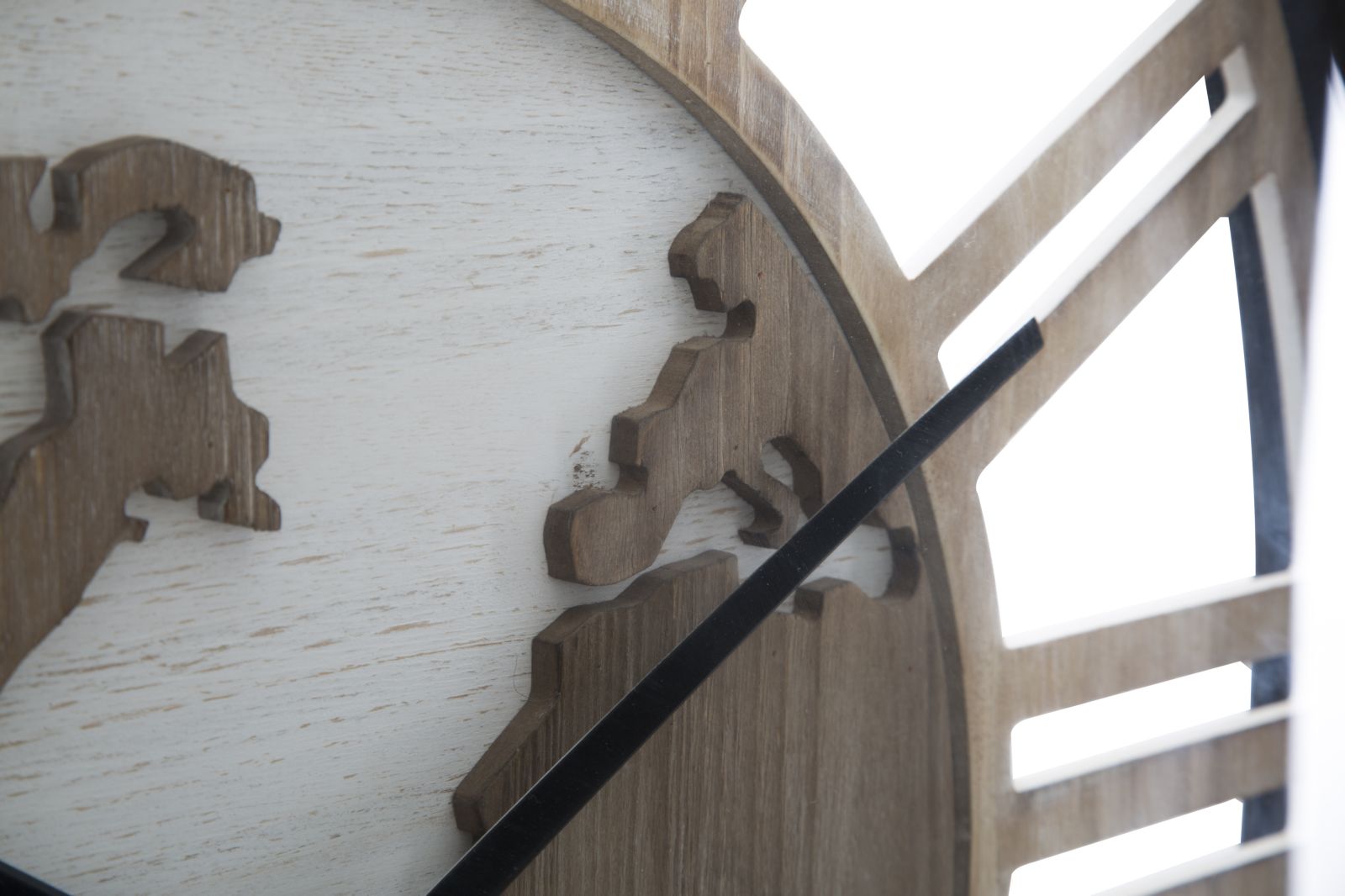 Les dimensions de l'horloge sont probablement conçues pour s'intégrer facilement dans un espace sur les murs de votre salon ou de votre cuisine, offrant une présence décorative sans être trop encombrante ou trop petite.