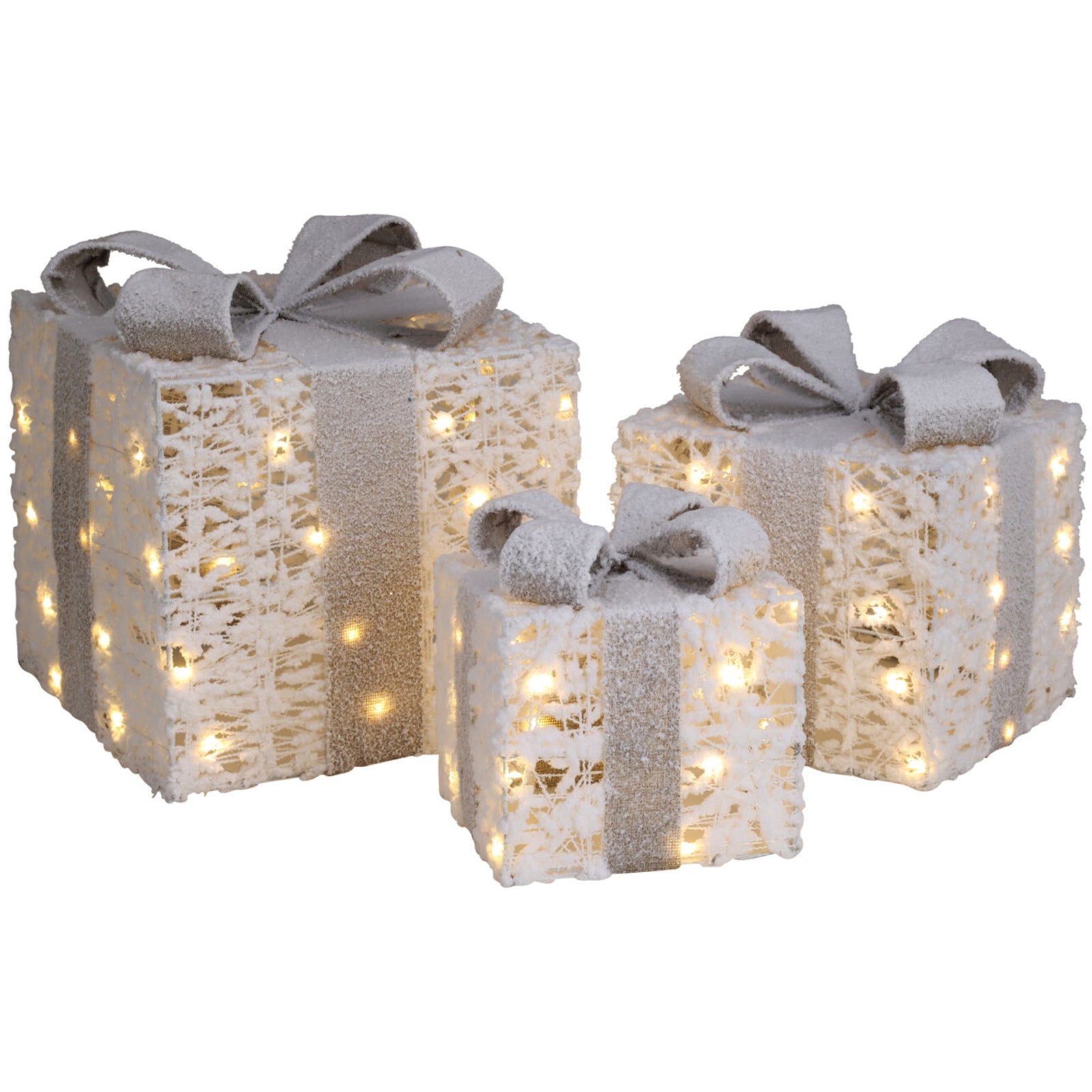 Emballage cadeau de Noël avec lumières LED, décoration en rotin, lot de 3