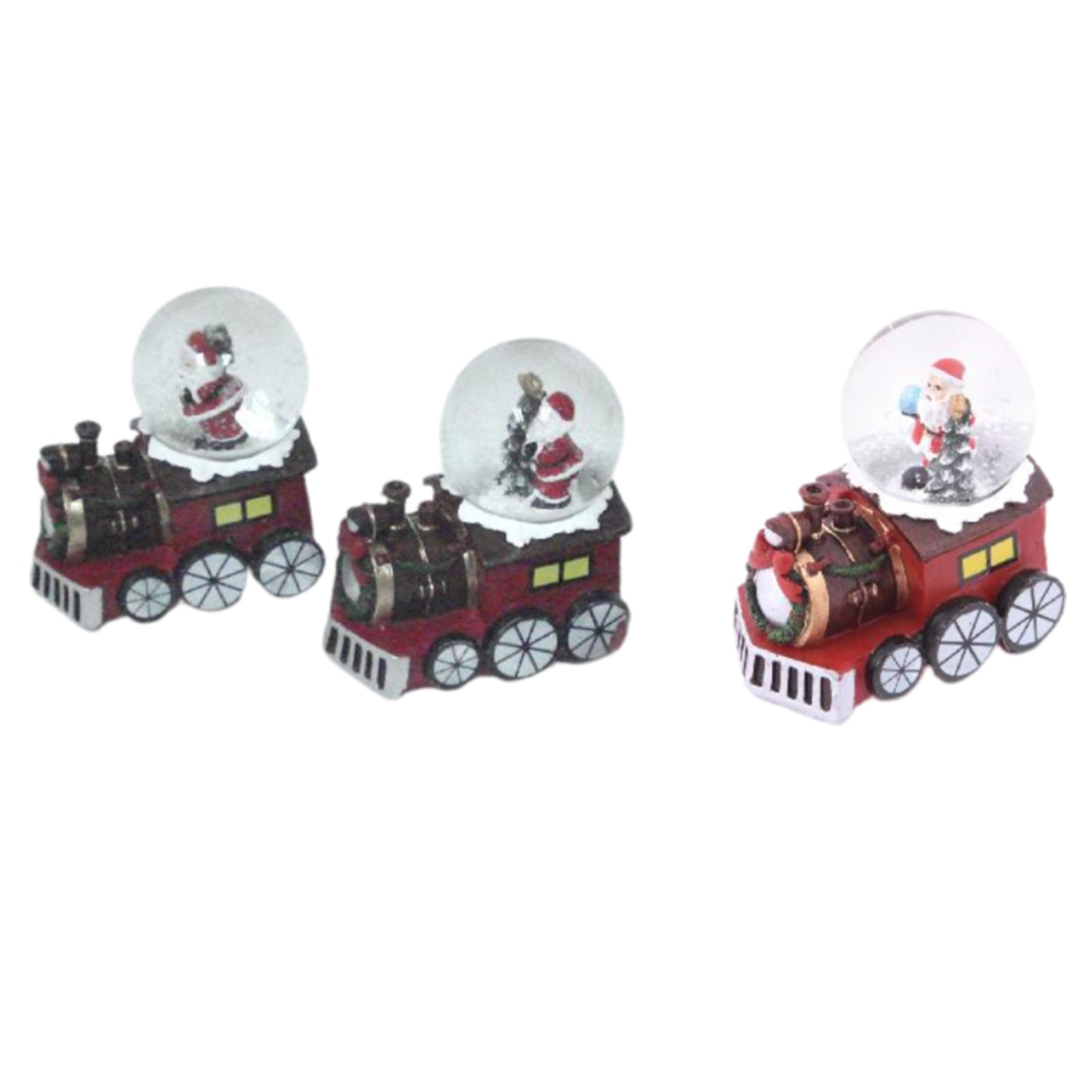 Boules de neige avec train rouge, décoration de Noël et jouet, 7,5 x 5 x h 8 cm, lot de 3 pièces