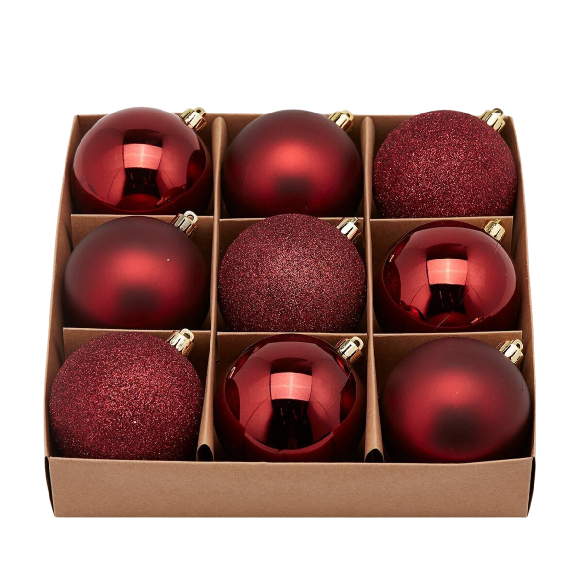 Boules de Noël de couleur Rouge Bourgogne, couleur unie, en PVC
