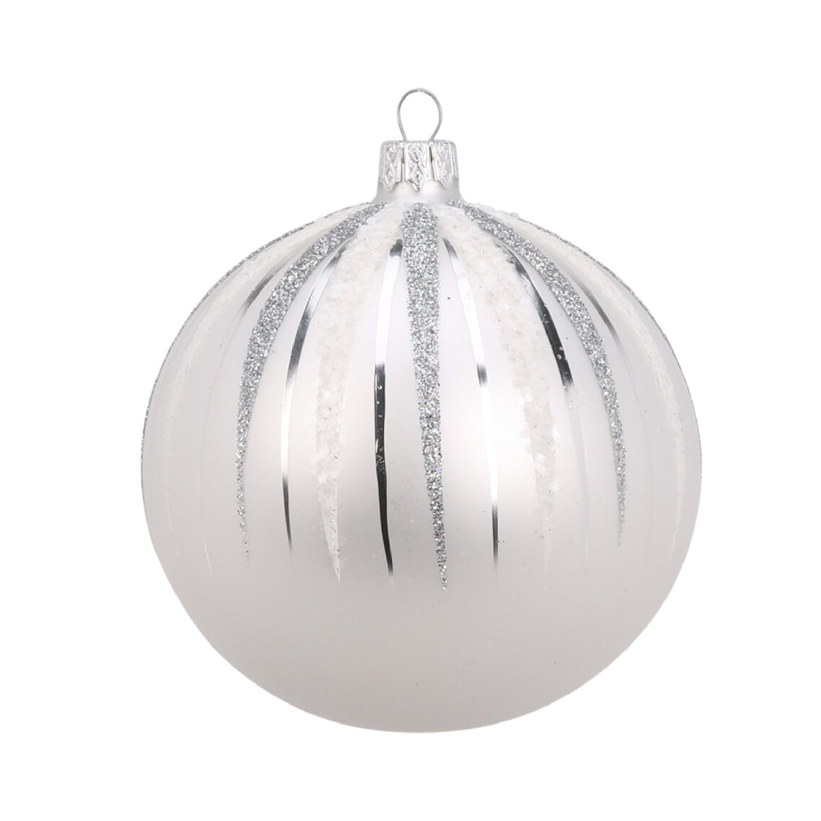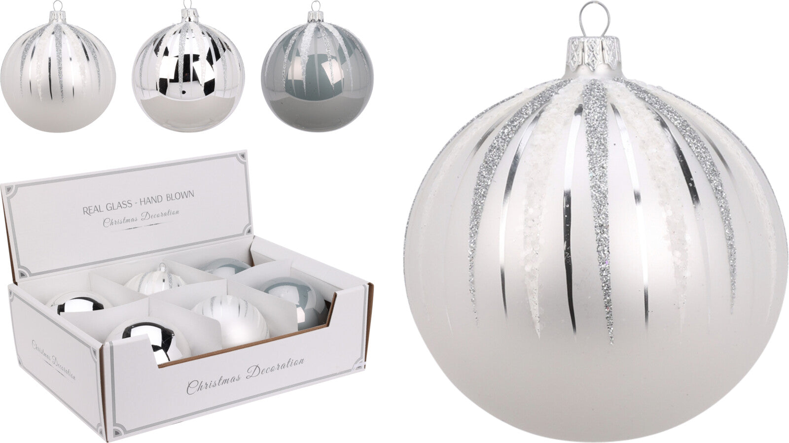 Boules de Noël, Verre, Argent, avec Paillettes, 100 mm, 6 pièces