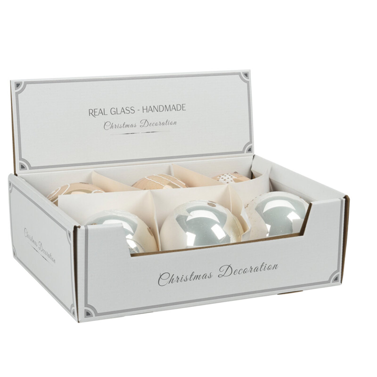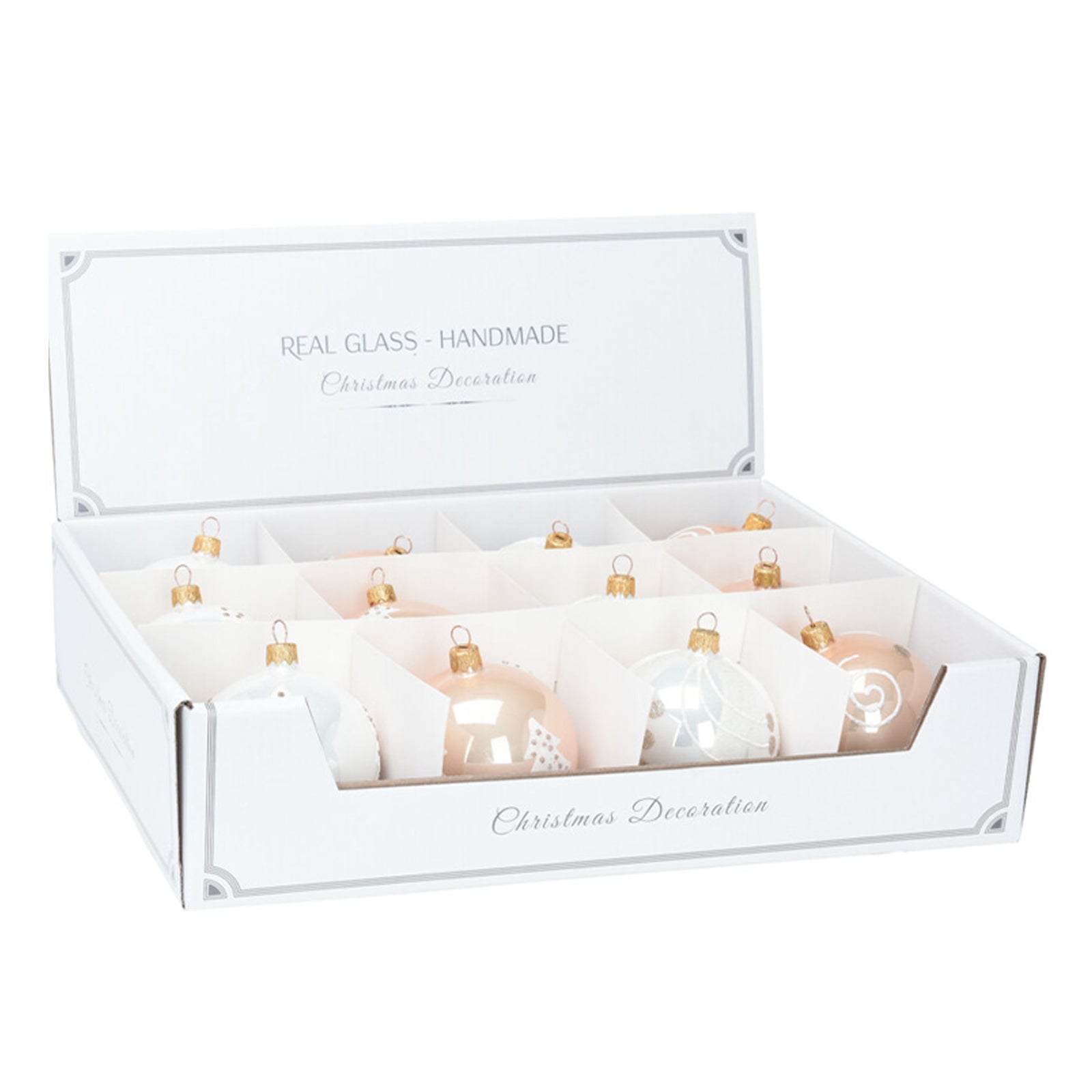 Prix régulier €29,90 Prix réduit €24,90Boules en verre brillant avec des paillettes à motifs idéales pour décorer votre sapin de Noël.