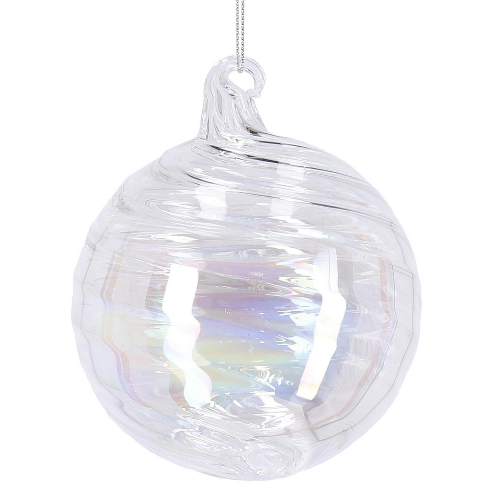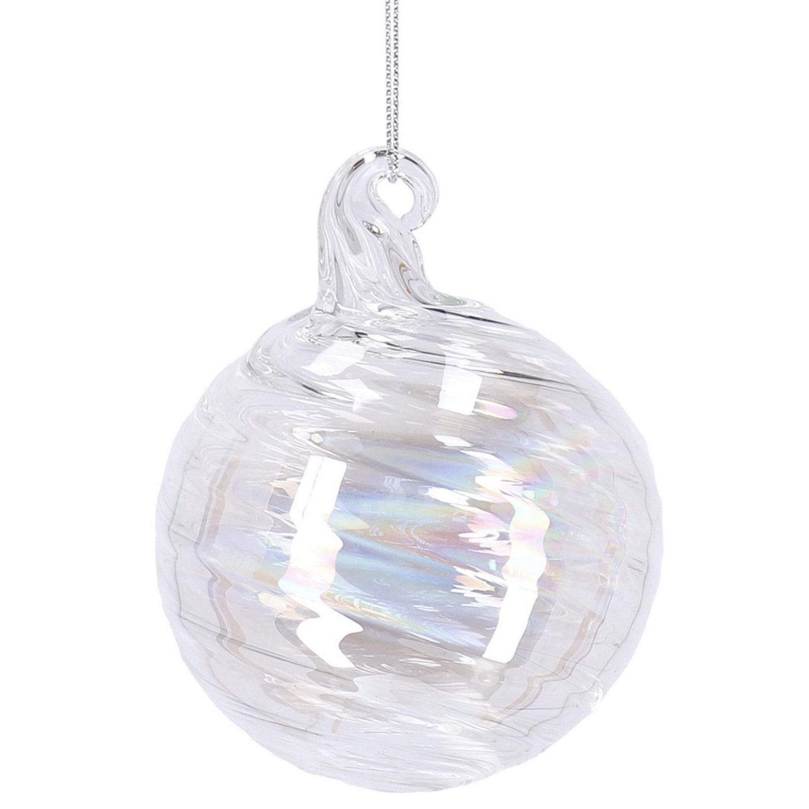 Ajoutez une touche d'élégance et de magie à votre sapin de Noël avec nos superbes boules de verre irisées « Spirale ».