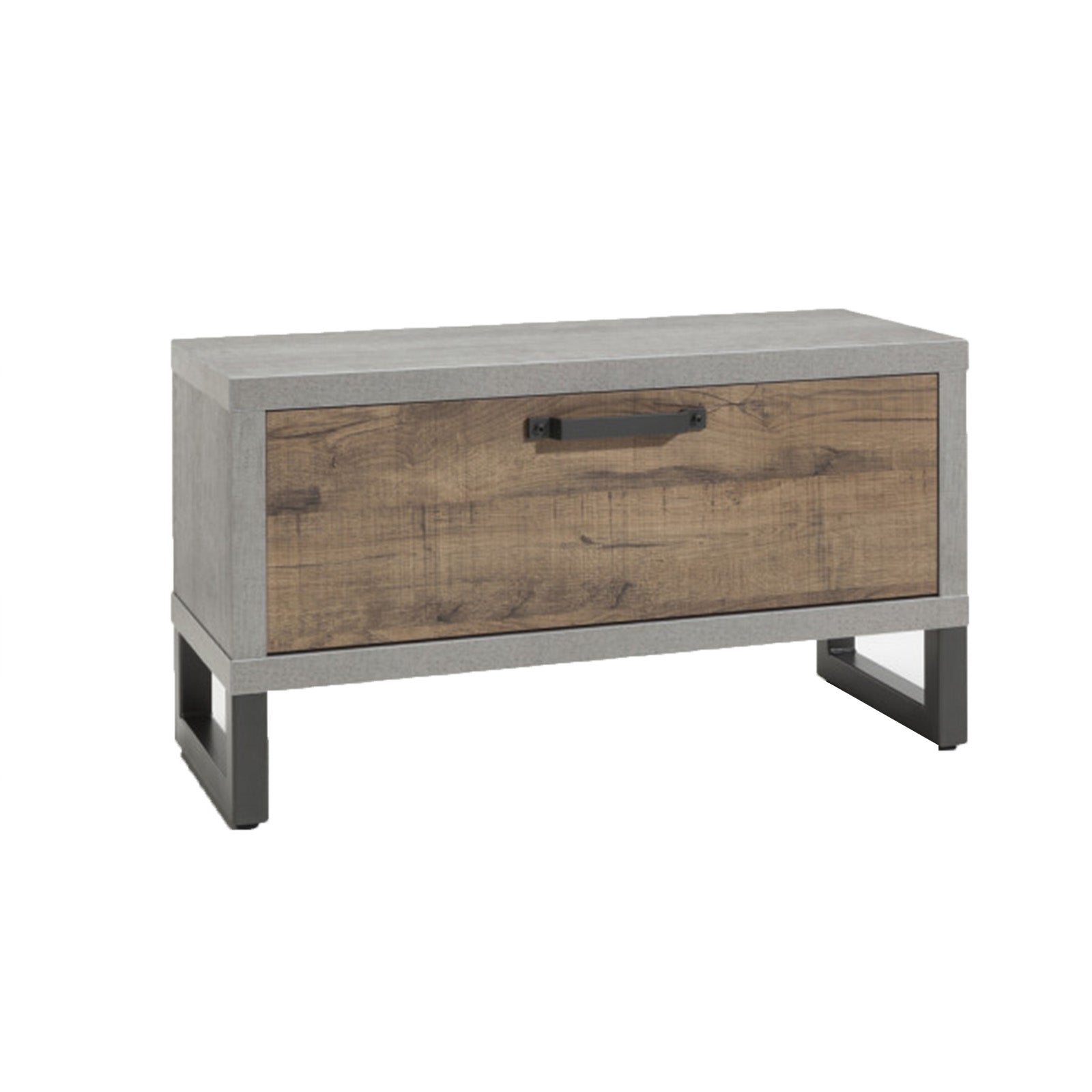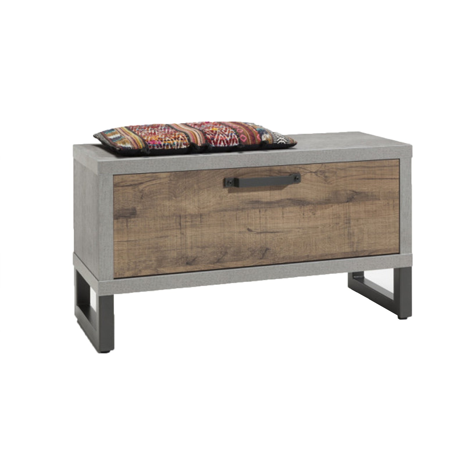 Prix régulier €249,90 Prix réduit €224,90Banc LaFabrica Gris Ciment avec abattant en Chêne VieilliBanc de la ligne LaFabrica, structure Gris Ciment 38 mm, façades en Chêne vieilli 18 mm avec grands pieds latéraux en métal de 15 cm de hauteur.