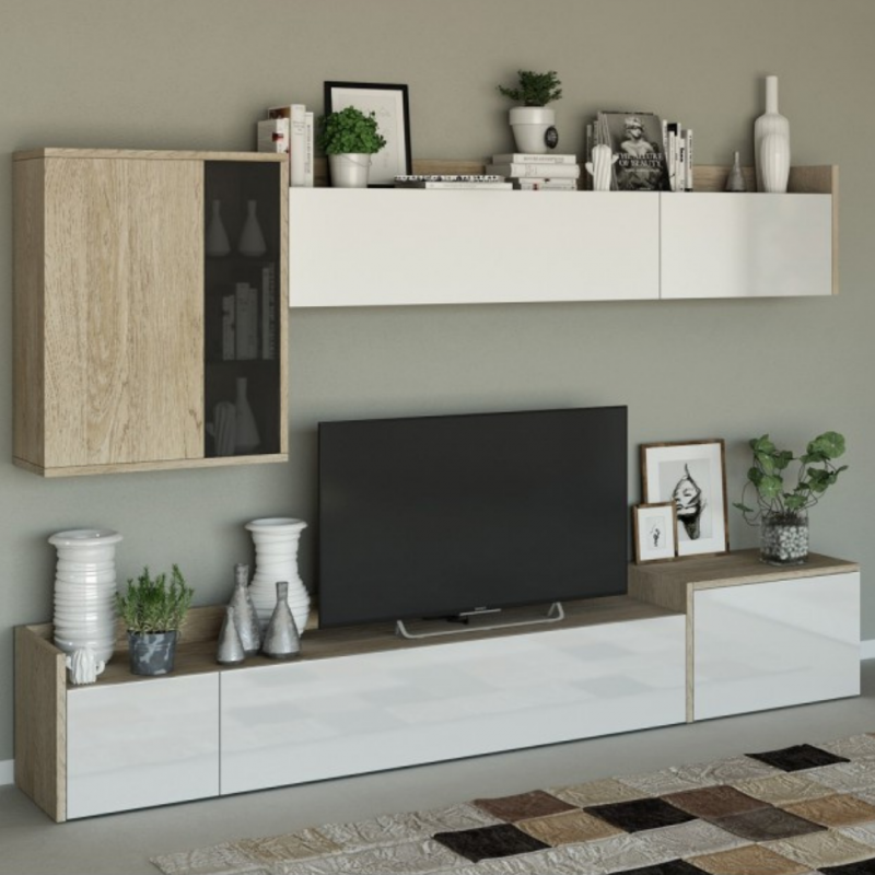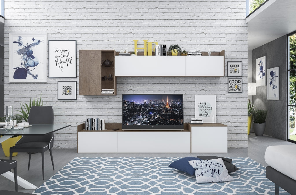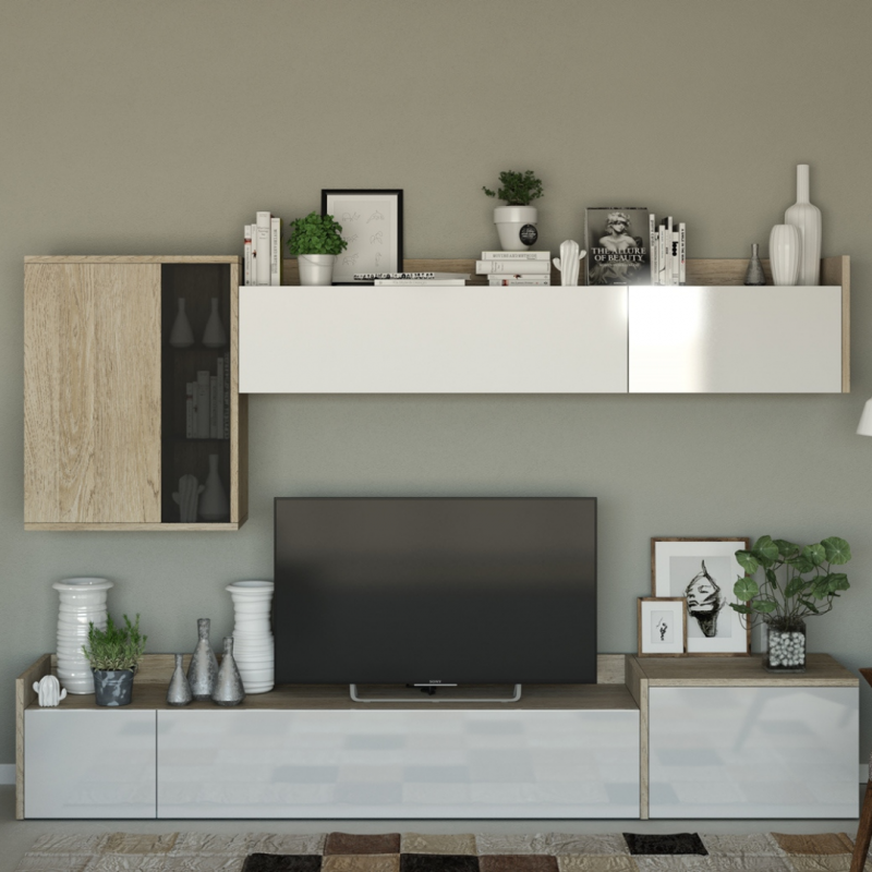 Une composition complète de la ligne Galerie plein d'espace, pour meubler le salon avec un design contemporain et lumineux.