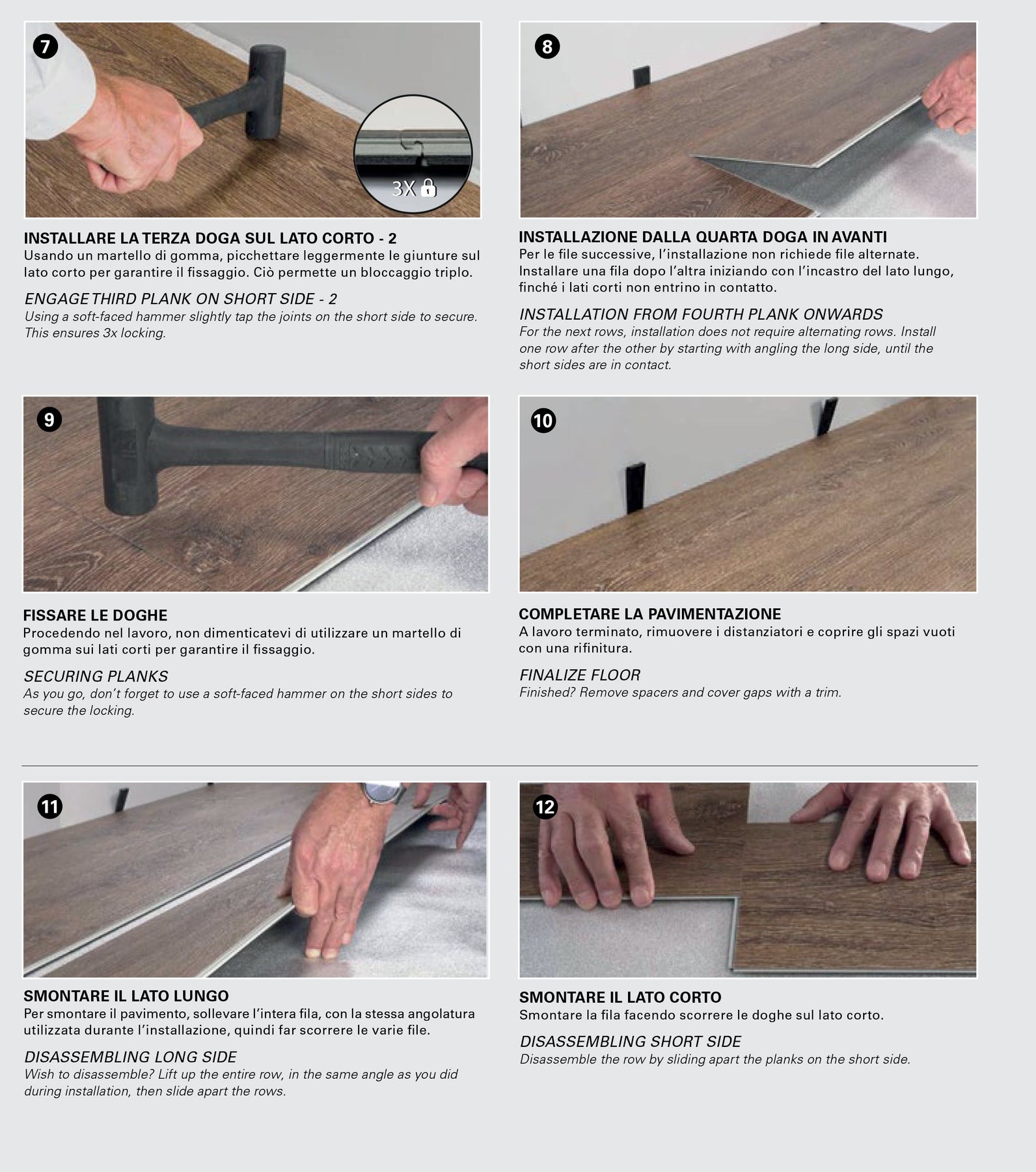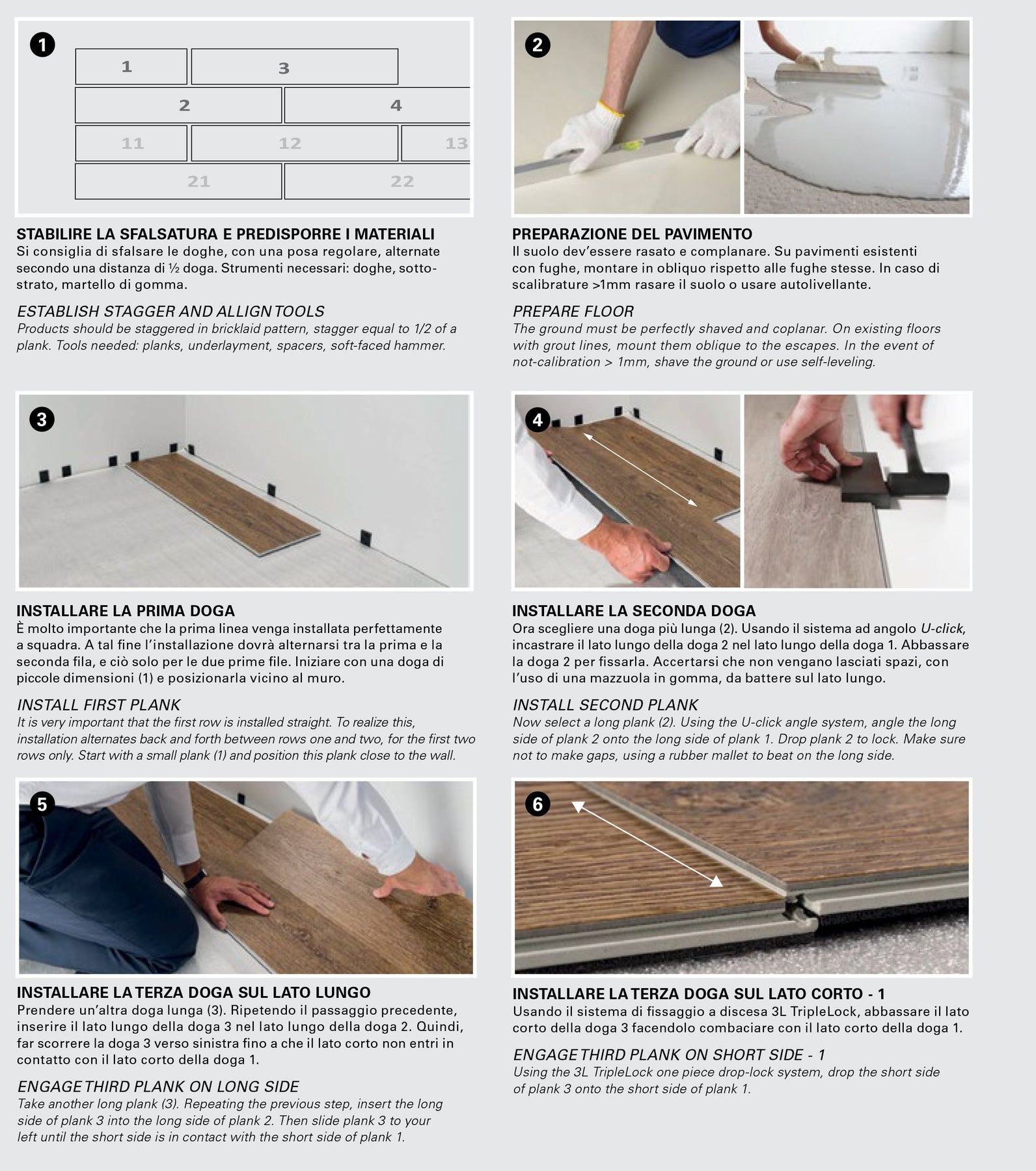 Grâce au système de verrouillage, il peut être installé sur des sols existants sans utiliser de colle, garantissant ainsi une étanchéité totale et l'absence de fuites.