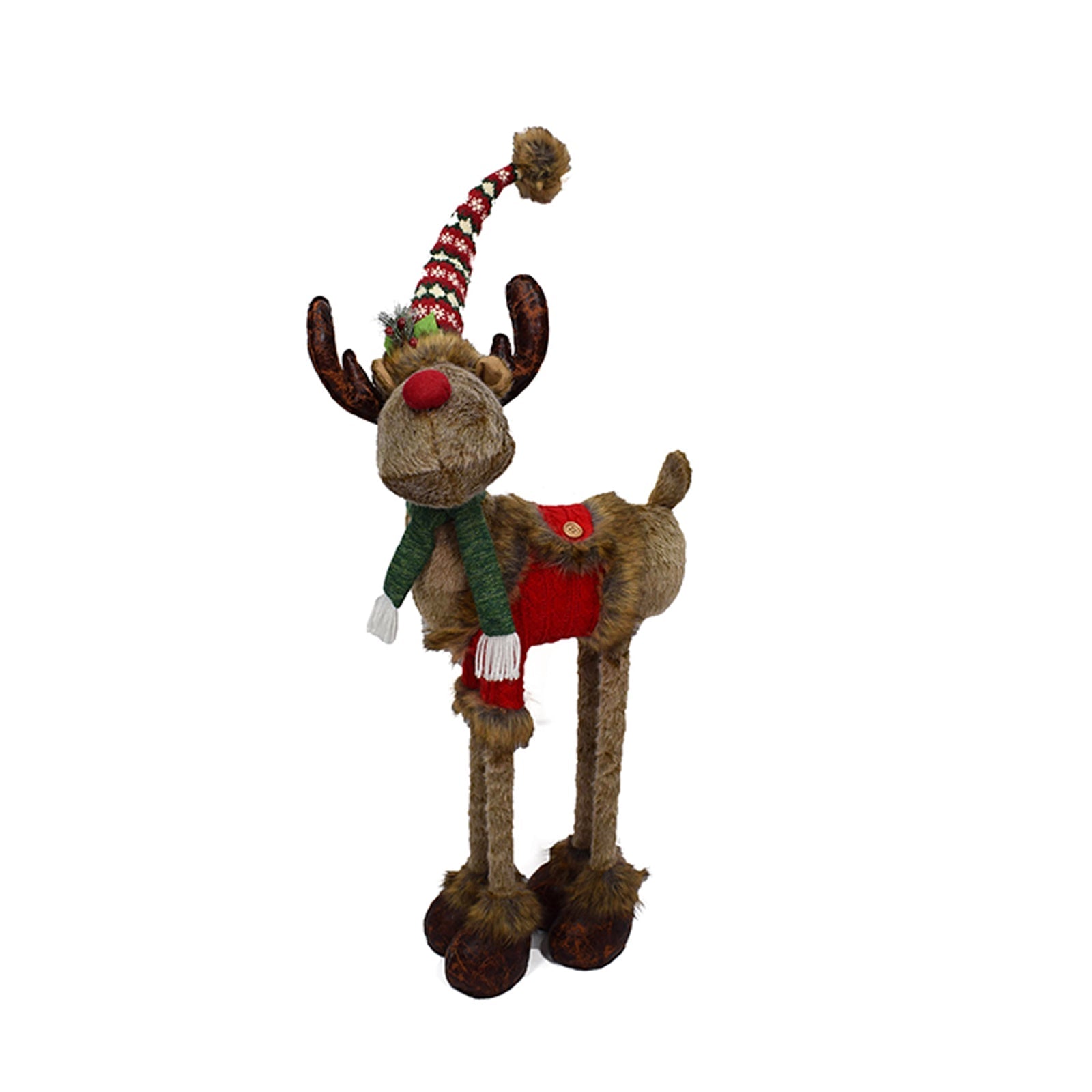 Renne de Noël en peluche avec robe rouge et décoration verte pour intérieur