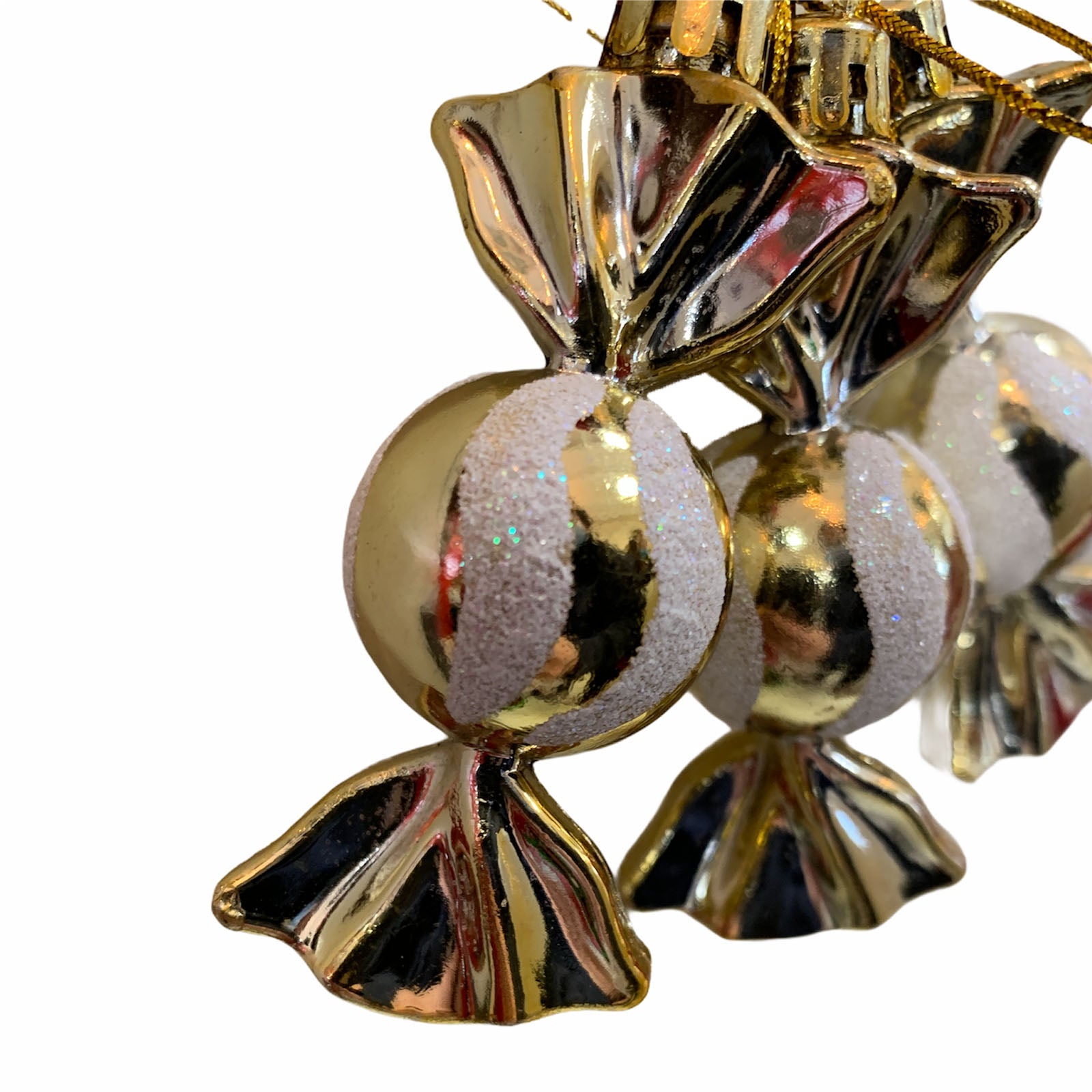 Pendentifs "Candy Gold" décoration de sapin de Noël 7 cm, lot de 3 pièces