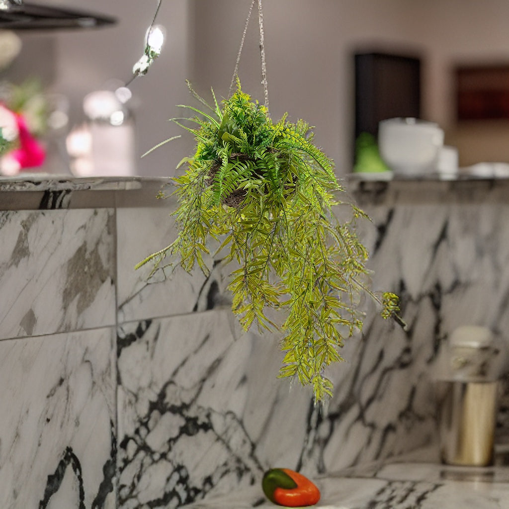 L'aspect principal de cette plante artificielle est la possibilité de la suspendre, grâce à la présence de bougeoirs intégrés. Cela rend la plante polyvalente et facile à placer, lui permettant d'être accrochée aux murs, balustrades, pergolas ou autres supports appropriés. Il est idéal pour ajouter une touche de nature et de fraîcheur même dans des espaces restreints.