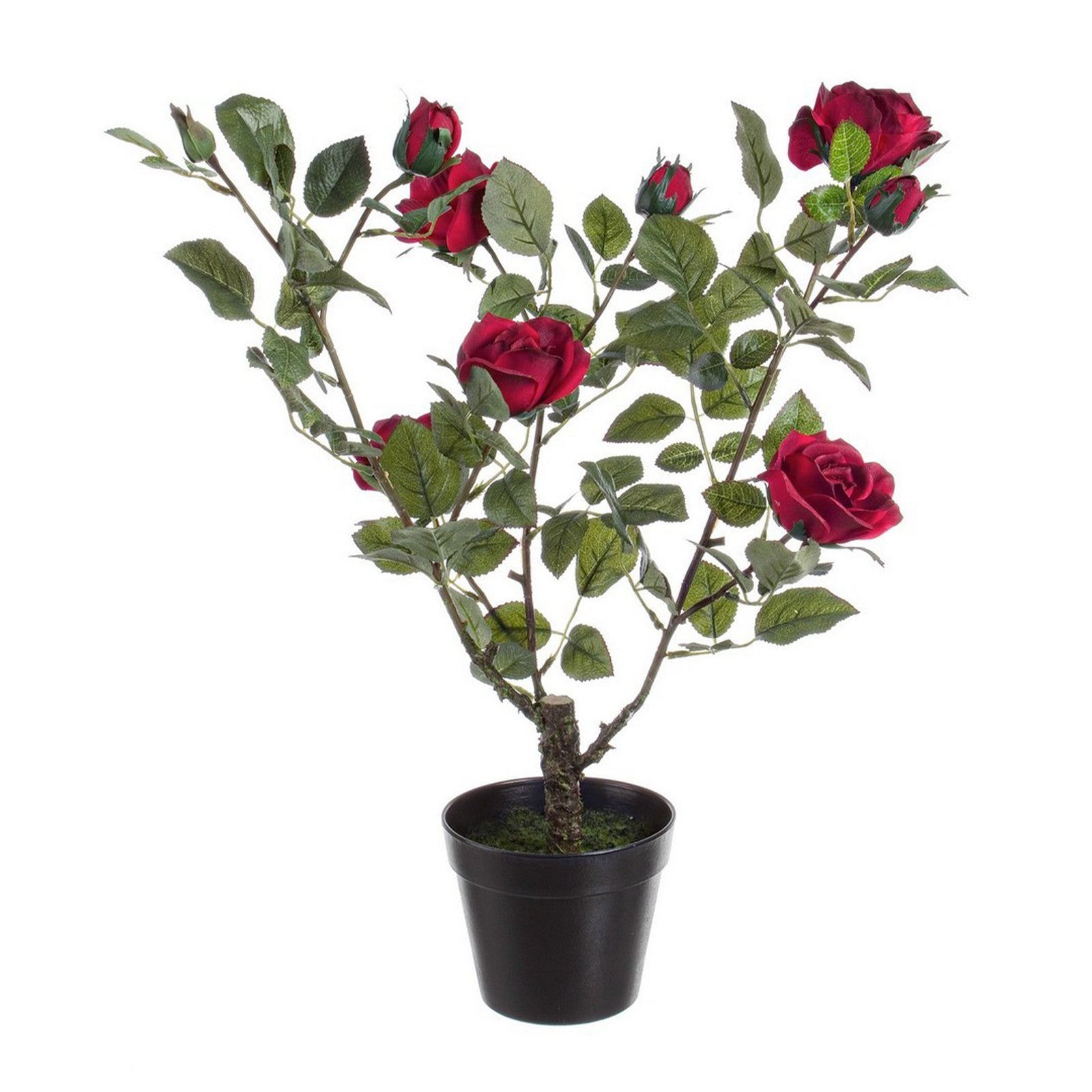 Plante artificielle "Isabel" avec roses rouges, tronc naturel, 51x39x66h cm
