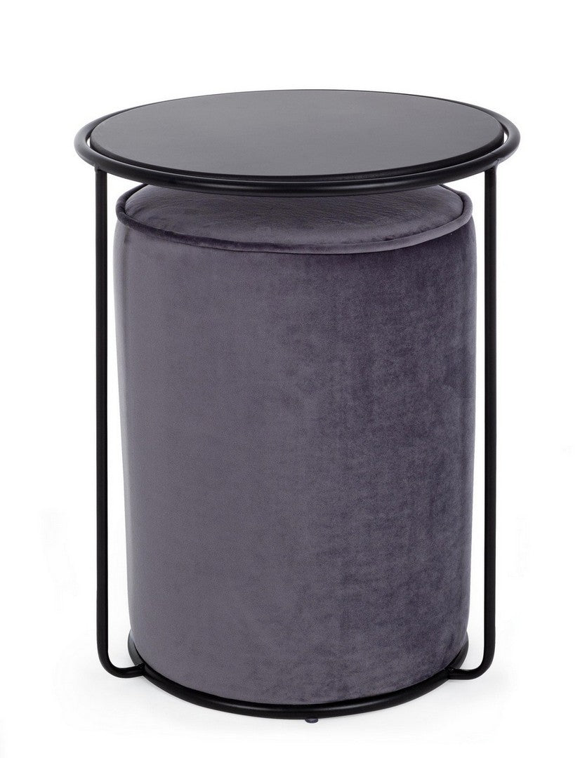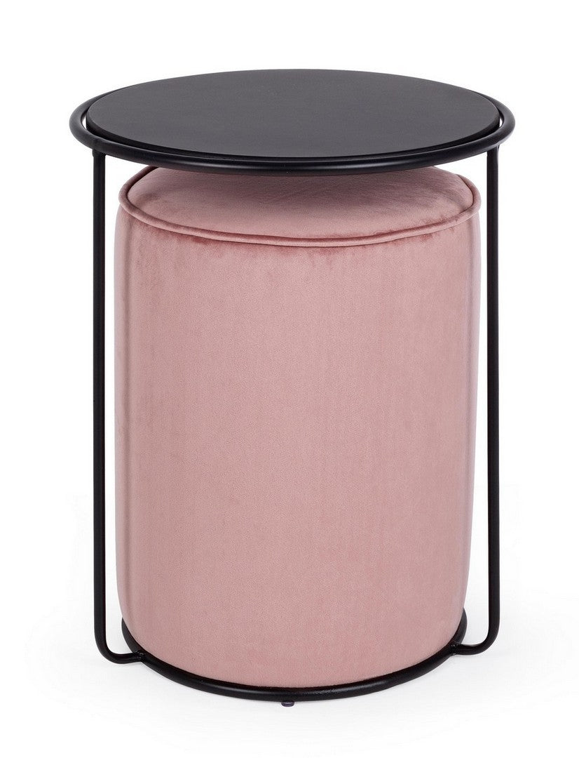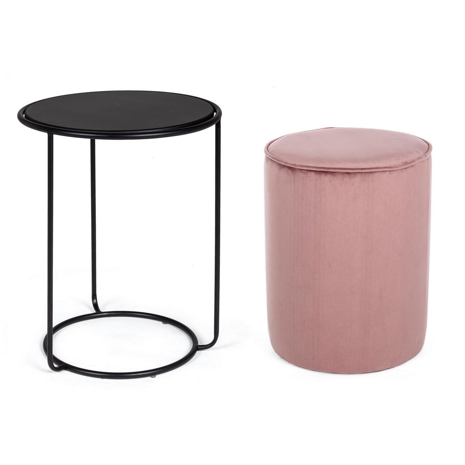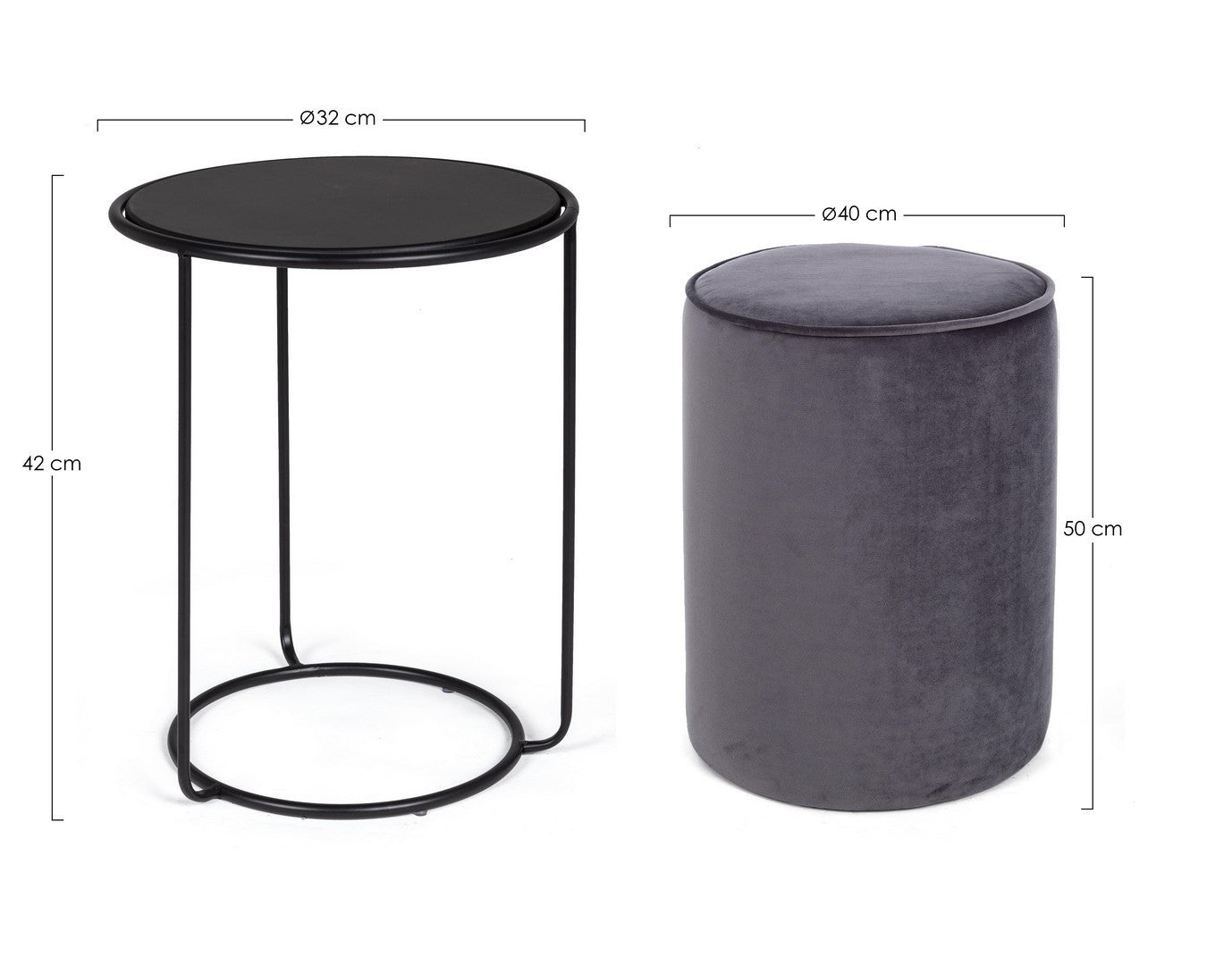 Fauteuil Pouf "Annika" pour intérieur, avec structure en acier peint par poudrage époxy et MDF, lot de 2 pièces