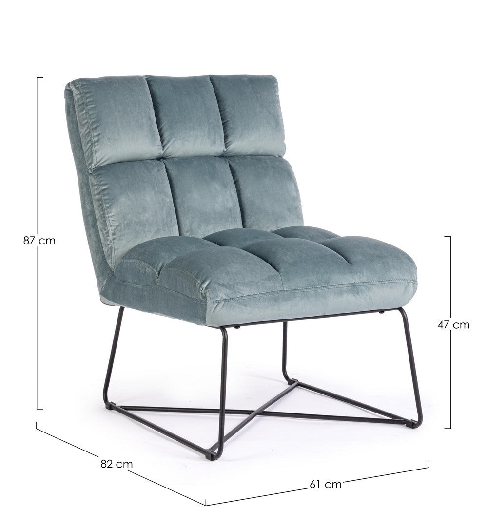 Le fauteuil "Lizzie" est un meuble élégant et moderne idéal pour les intérieurs. Sa structure et ses pieds sont en acier résistant, peint avec de la poudre époxy pour une plus grande durabilité. Les dimensions de 61 x 82 x 87 cm assurent un espace d'assise confortable. Le design raffiné et raffiné s'adapte parfaitement à tout style d'ameublement et les matériaux de haute qualité garantissent une longue durée de vie. Le fauteuil "Lizzie" est un choix idéal pour créer un environnement accueillant et tendance dans votre maison.