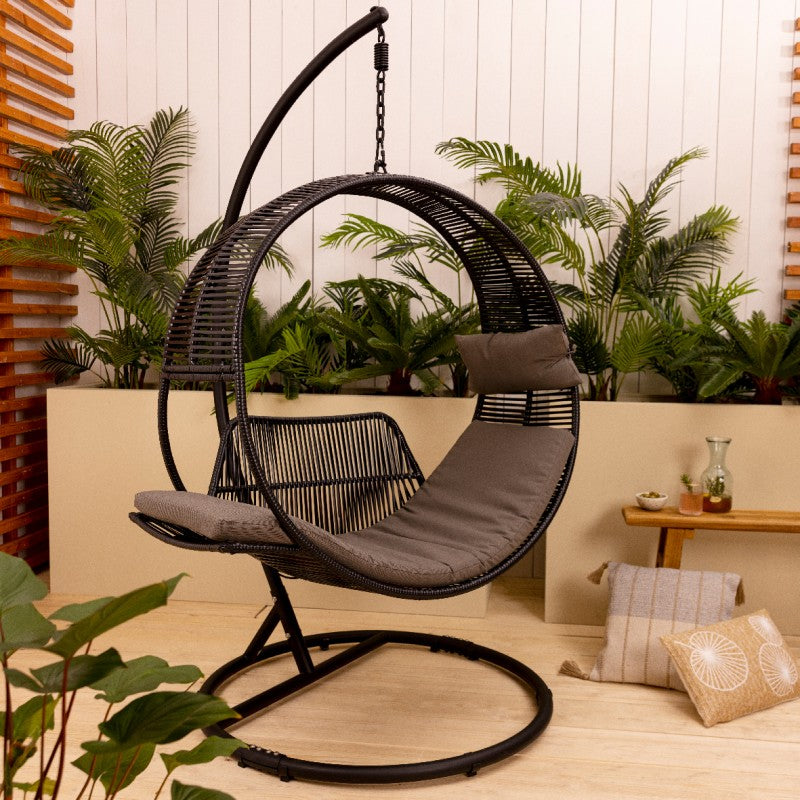 Ajoutez une touche de luxe à votre jardin avec le fauteuil suspendu noir « Kauai », un havre de confort et de style en plein air.