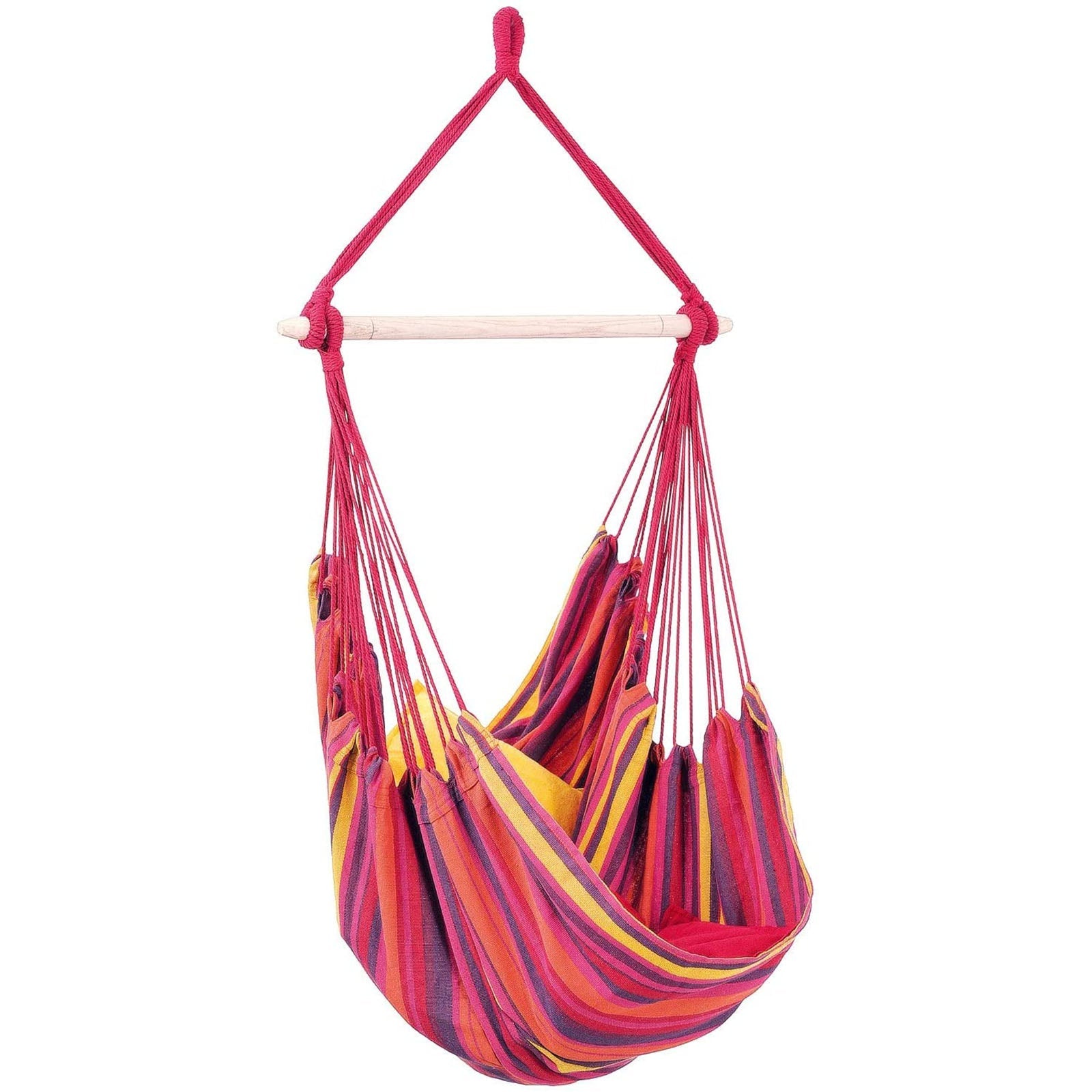Prix régulier €37,90 Prix réduit €31,90Fauteuil à bascule de jardin suspendu en corde beige et barre de support en bois