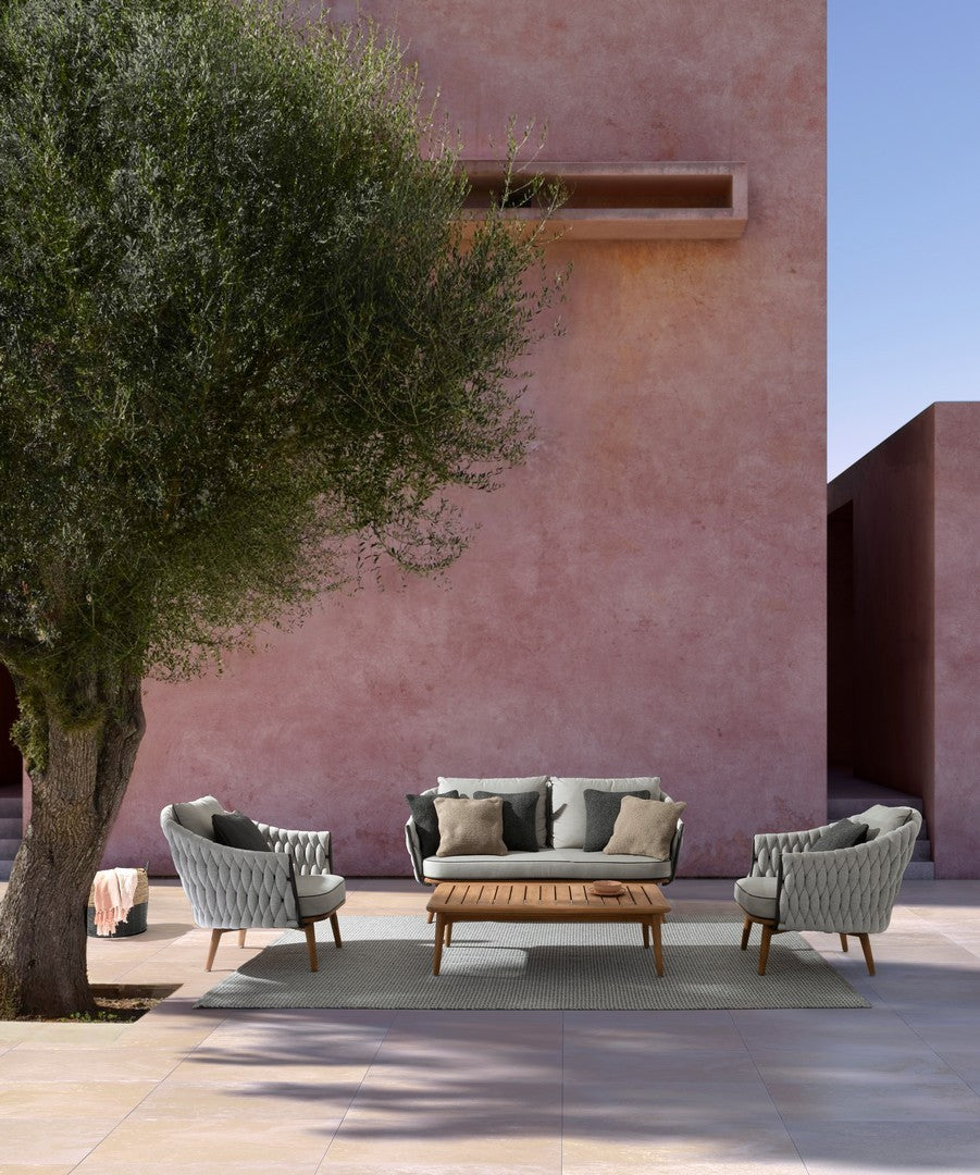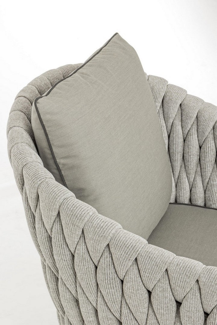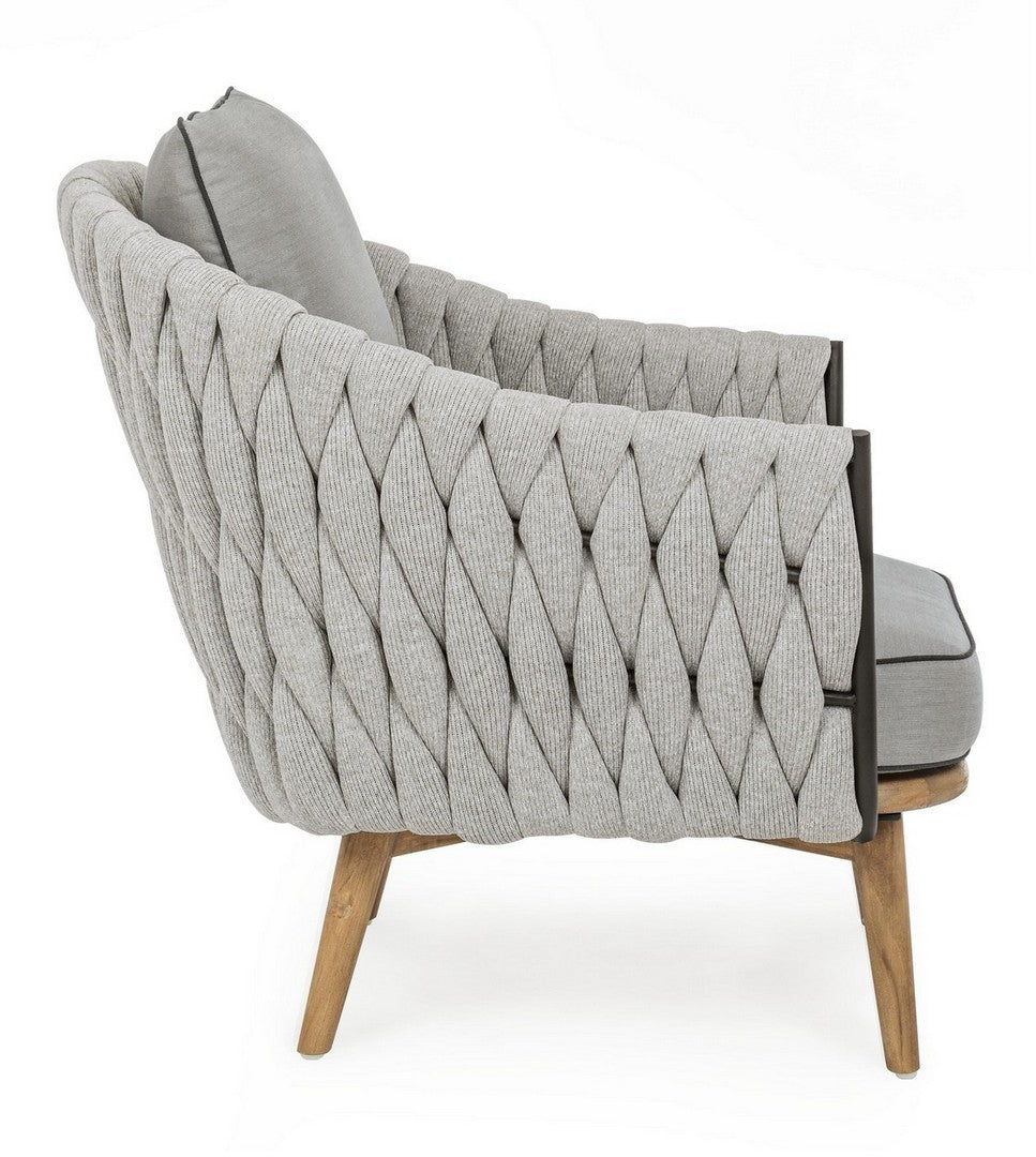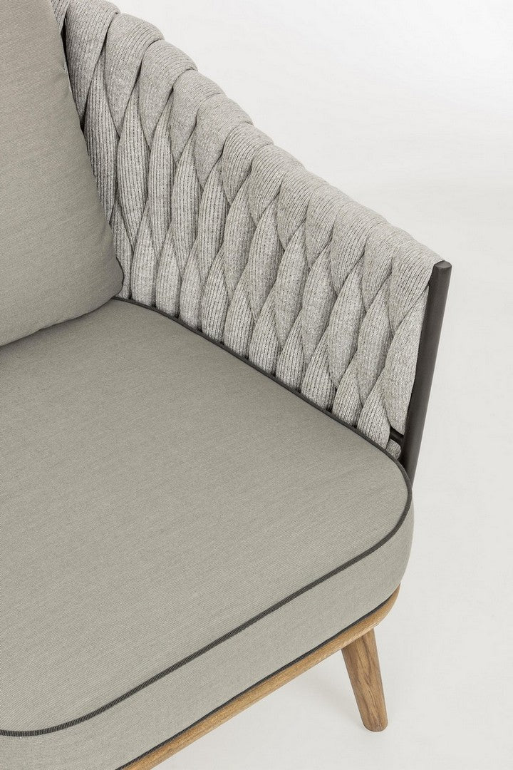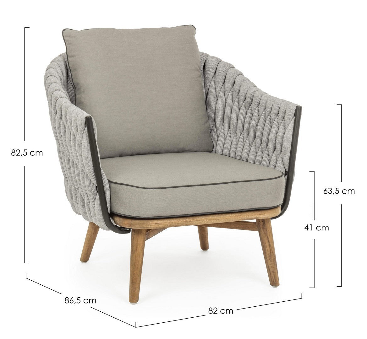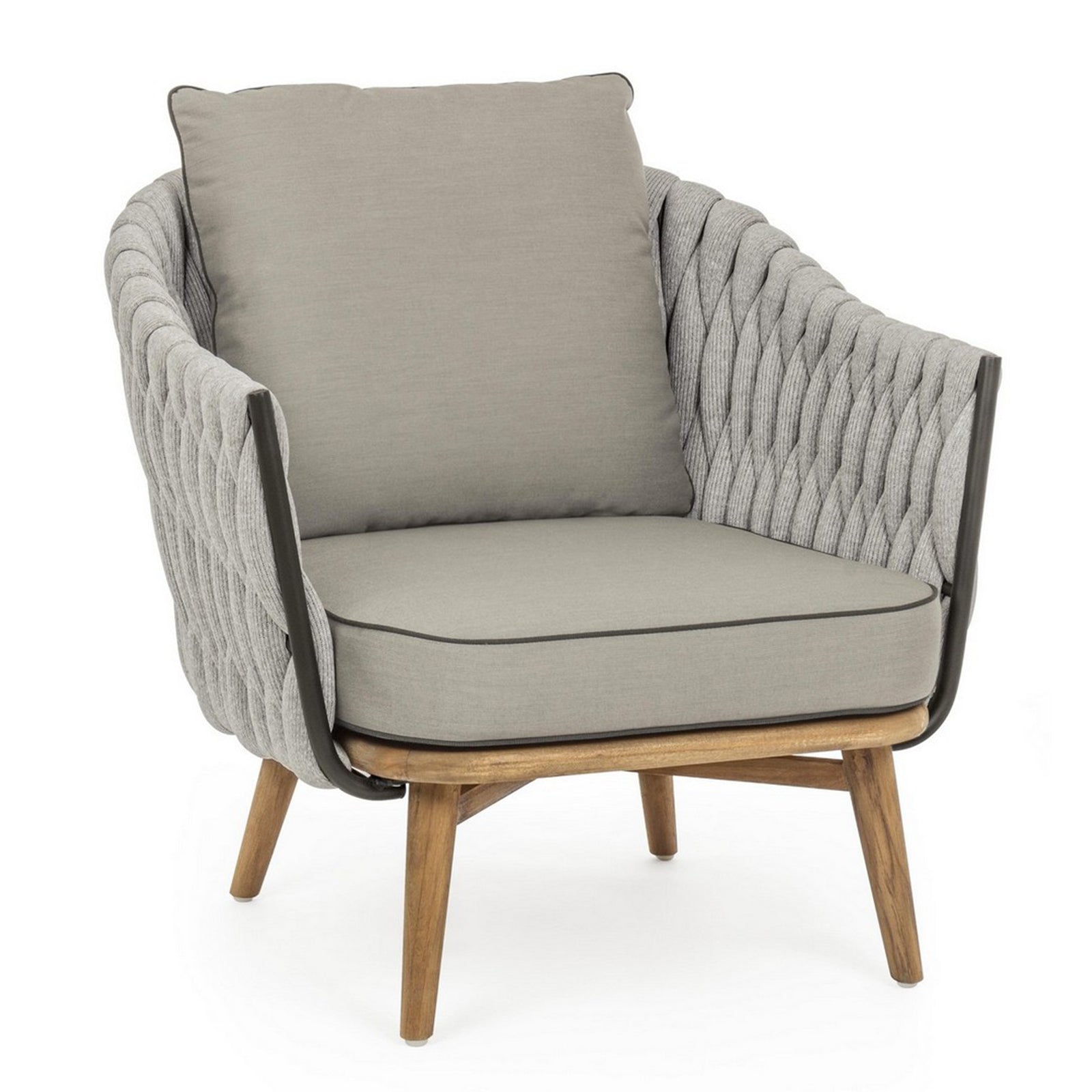 Fauteuil "Xenia" avec coussins, structure en aluminium peint, pieds en bois pour usage extérieur