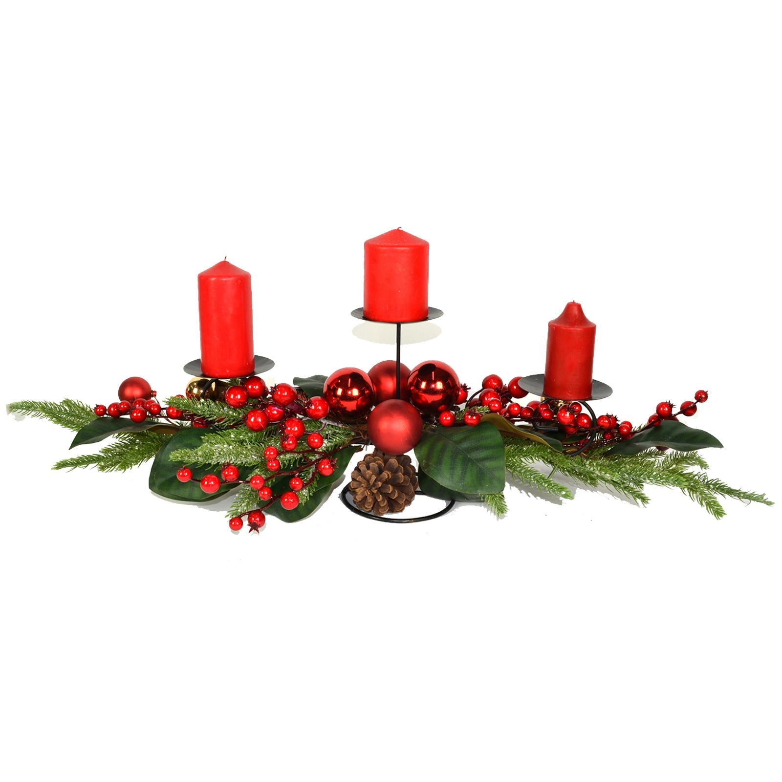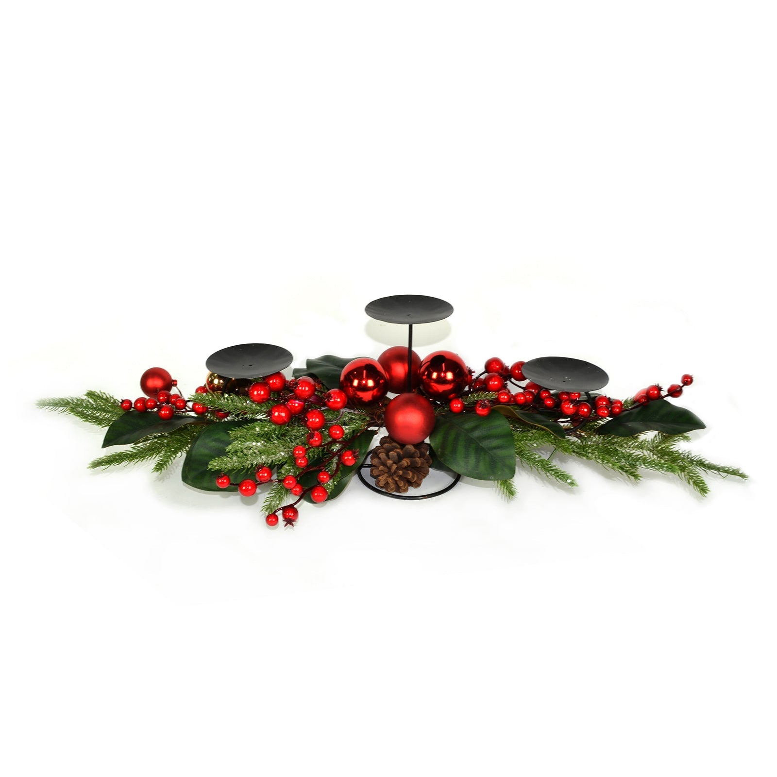 Bougeoir fruits rouges centre de table Noël 80 cm
