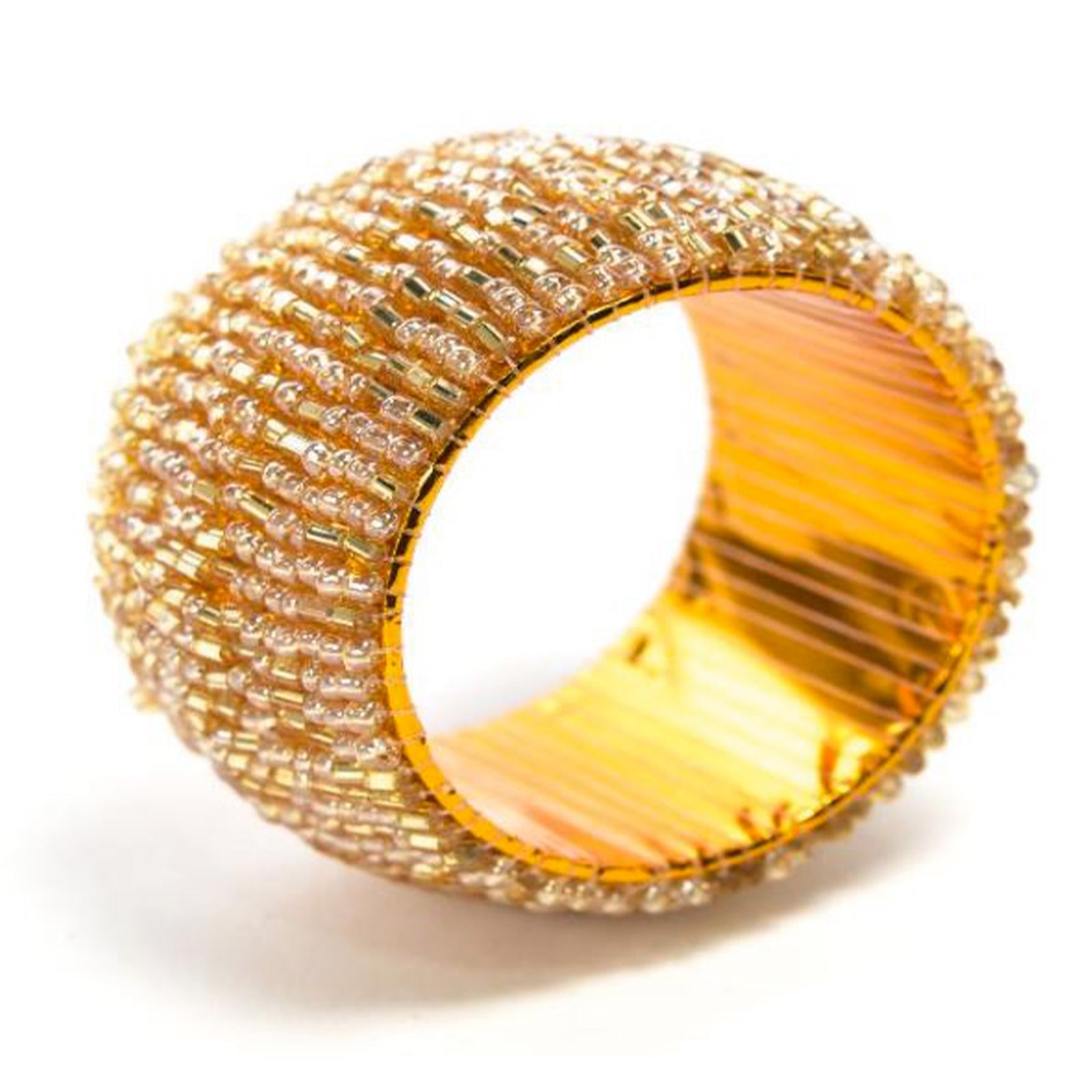 Fabriqué avec des matériaux de haute qualité, ce rond de serviette allie la robustesse du métal à l'éclat des perles chatoyantes, créant un effet décoratif lumineux et festif.