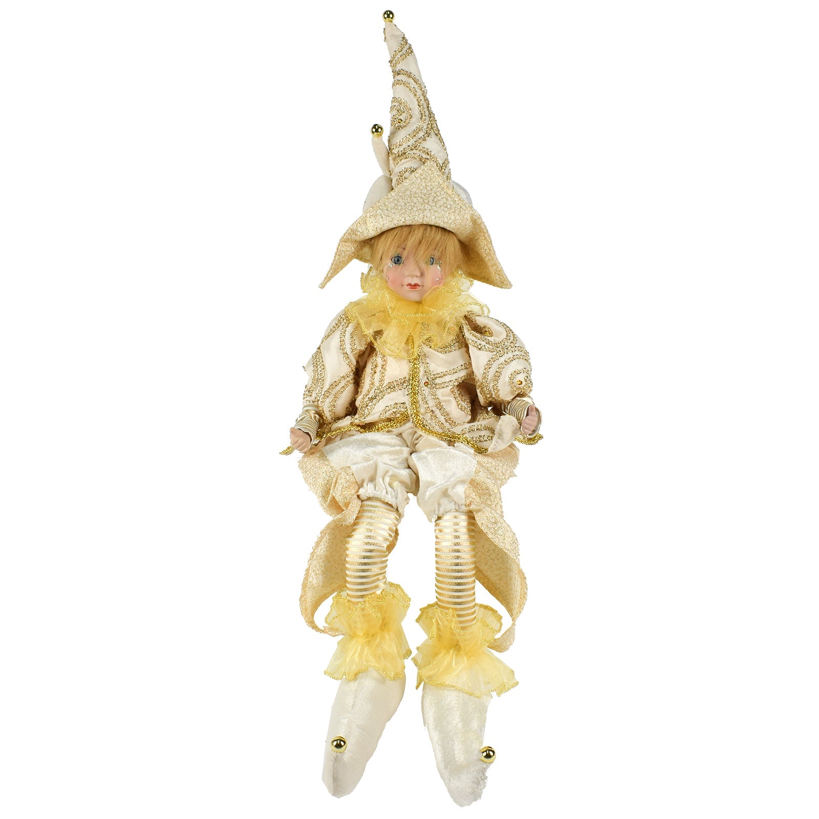 Marionnette avec boîte à musique beige "Jester" décoration de Noël h 65 cm