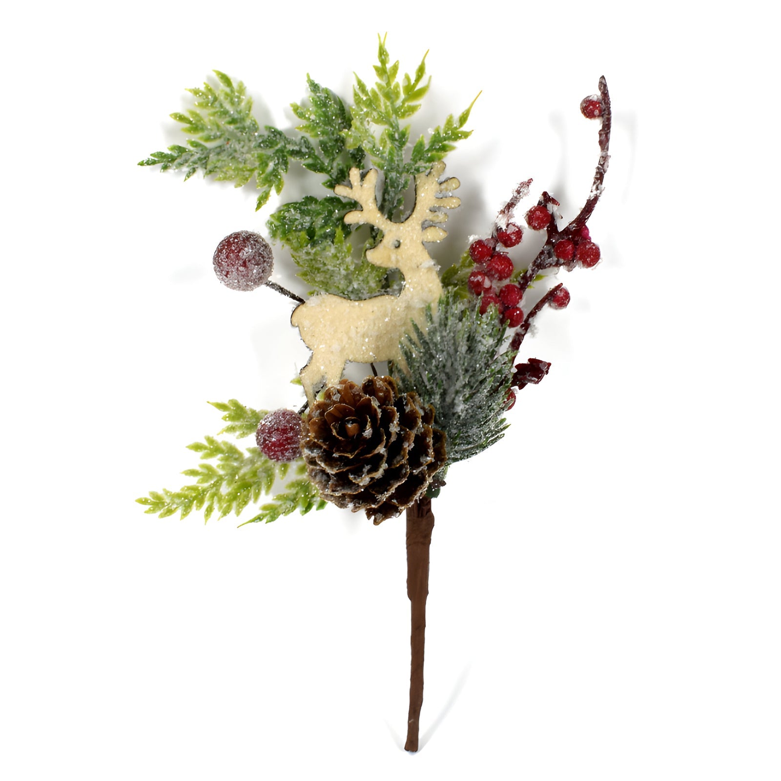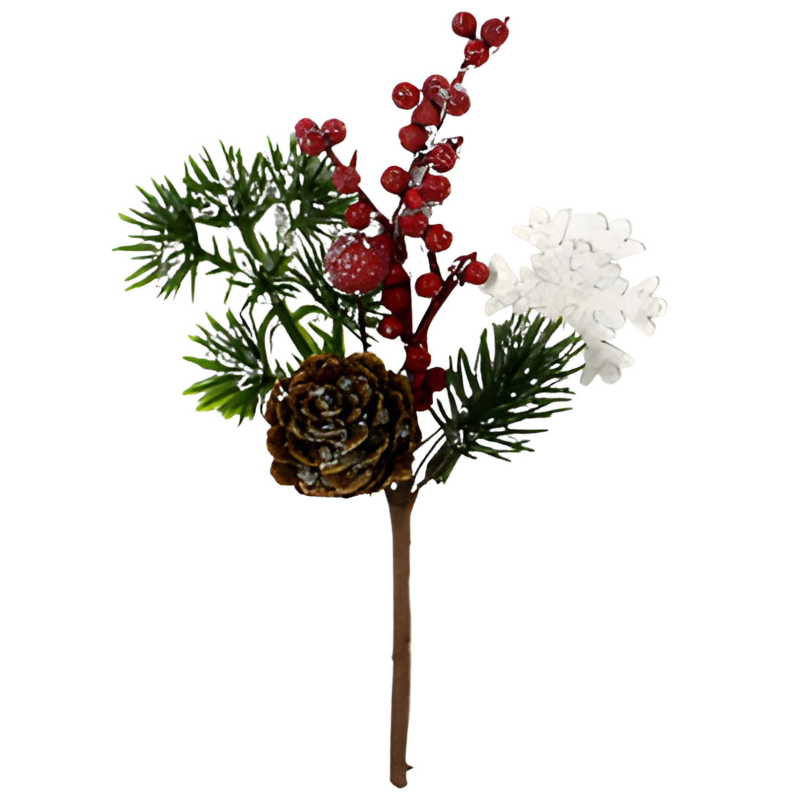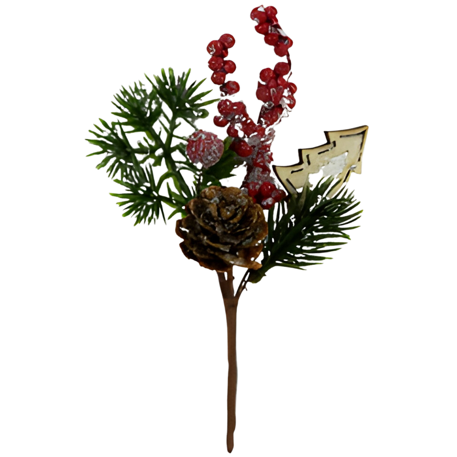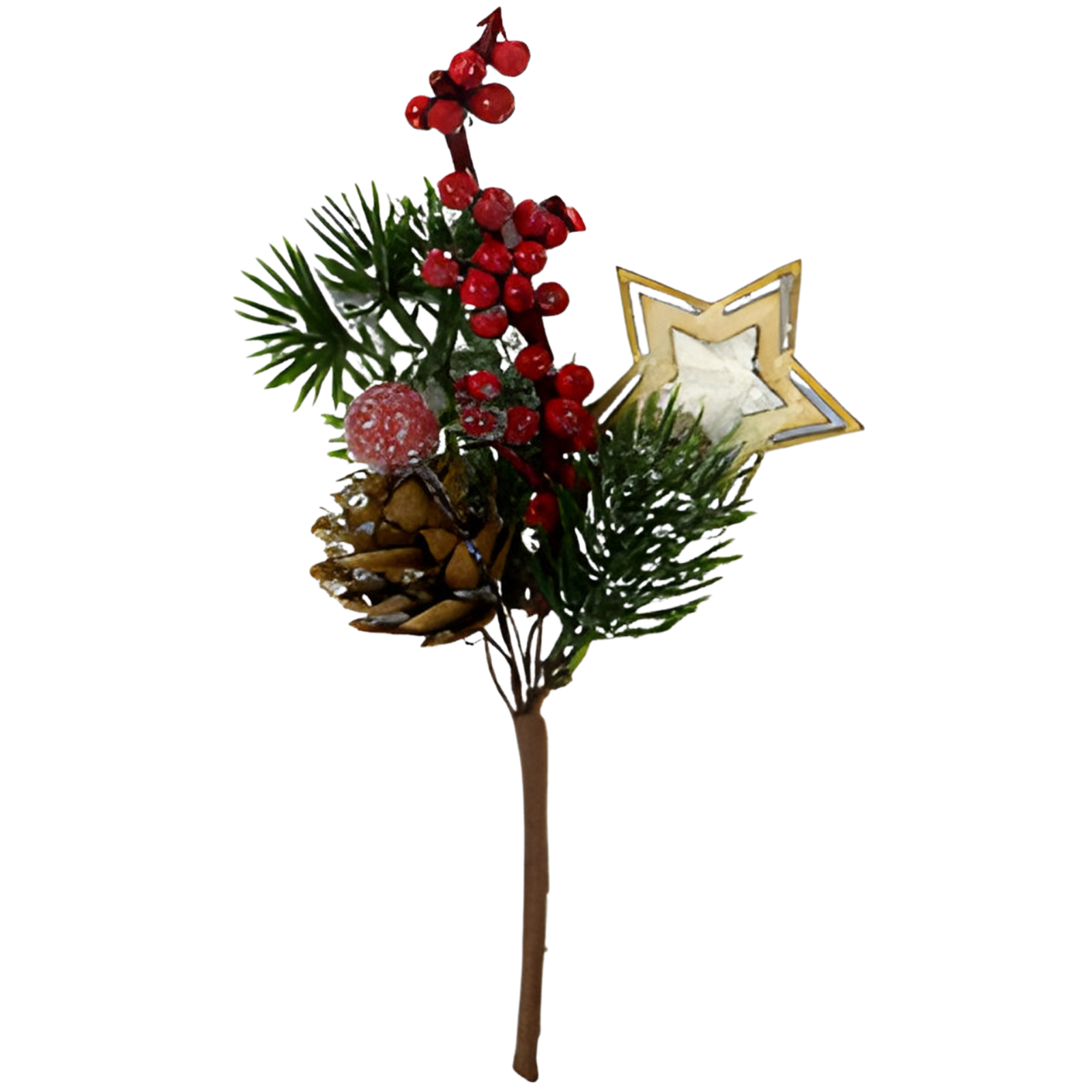 D'une longueur de 37 cm , ce brin offre un charmant mélange de baies, pommes de pin et autres décorations de Noël.