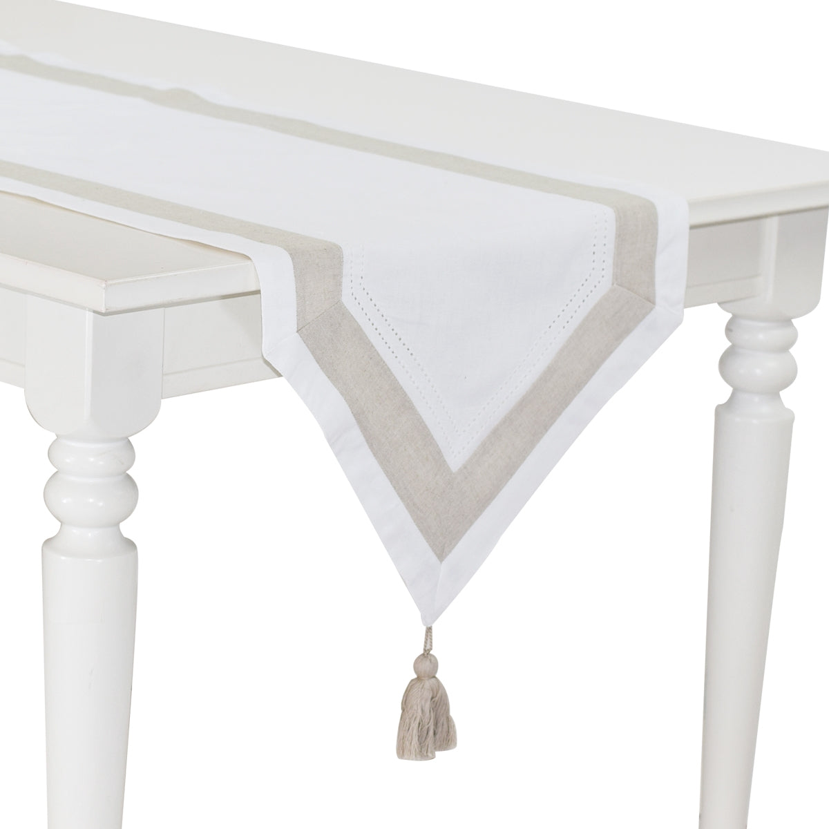 Prix régulier €37,90 Prix réduit €26,90Ce tapis en coton avec volant en lin fait partie de la ligne de cuisine Tres Chic de Preziosa Luxury Home.