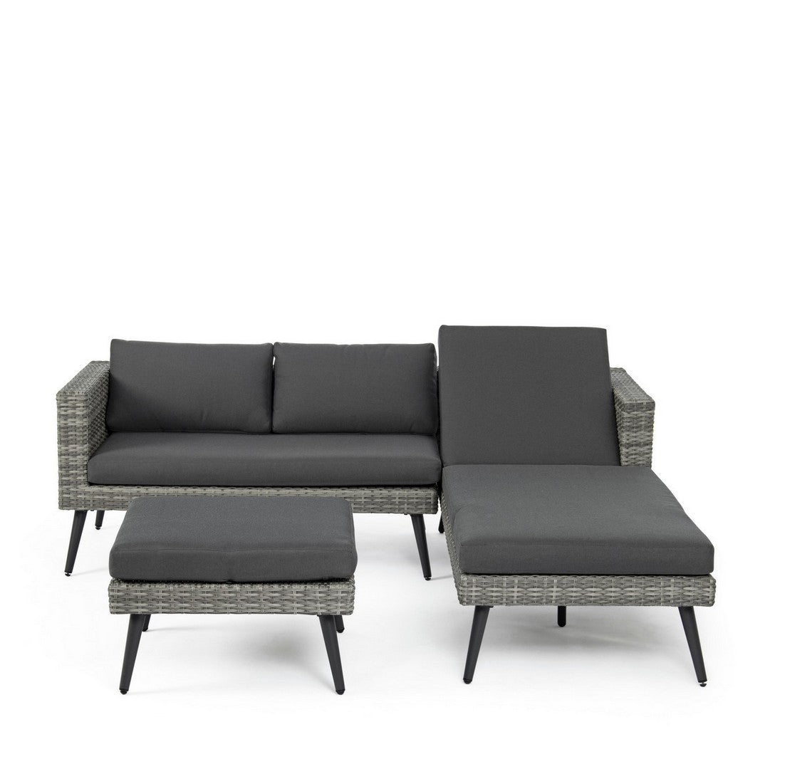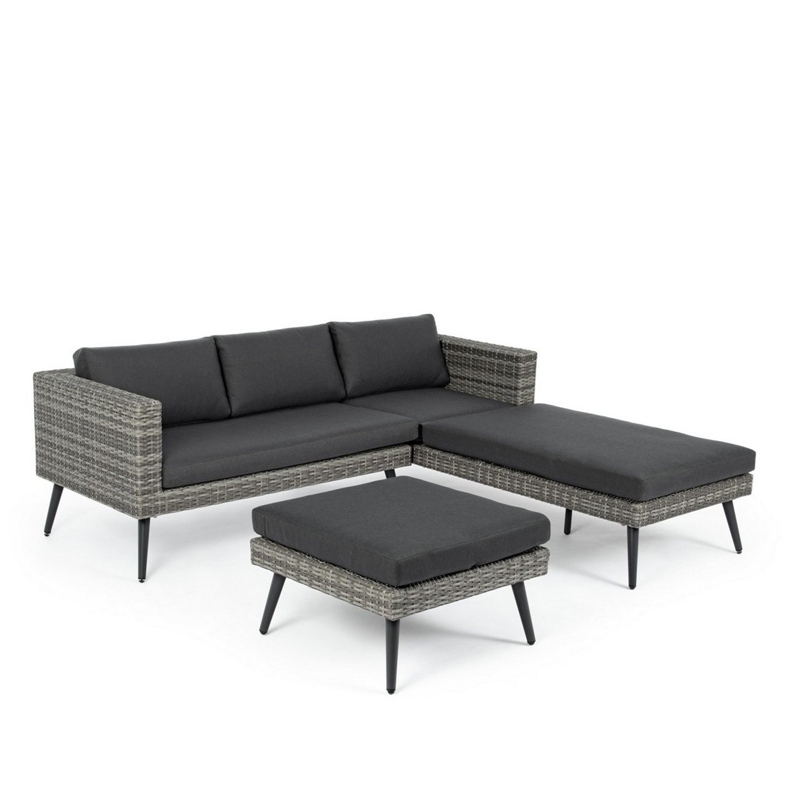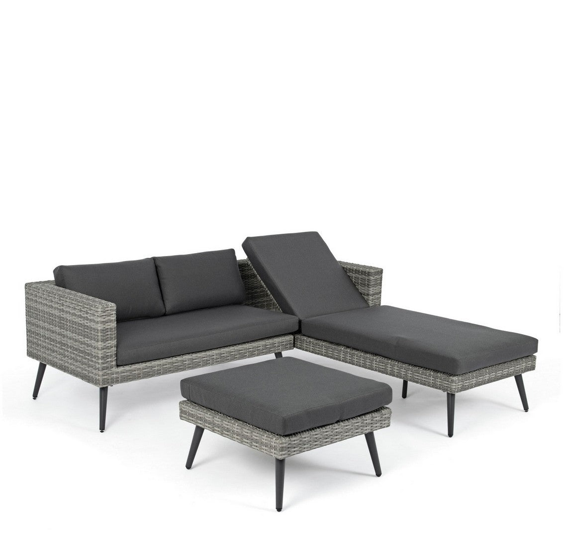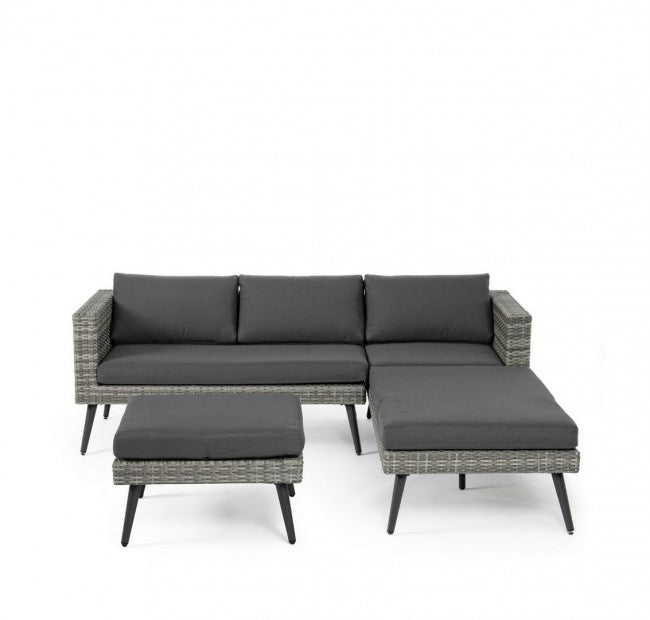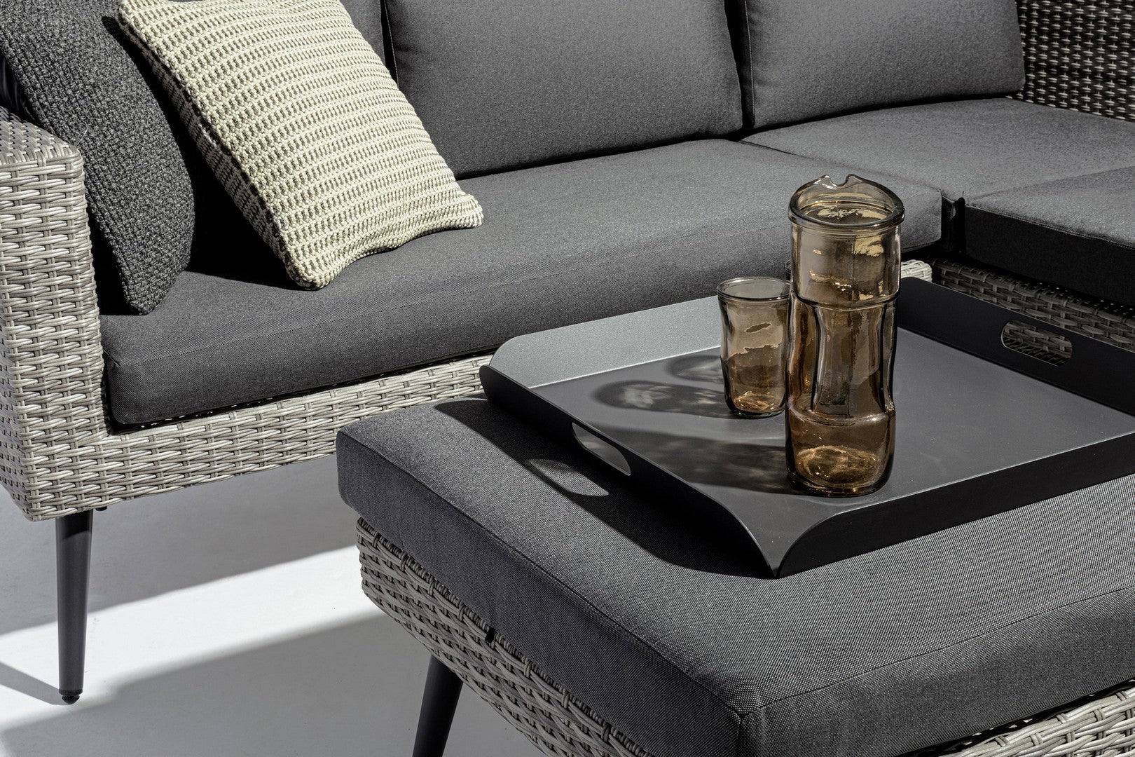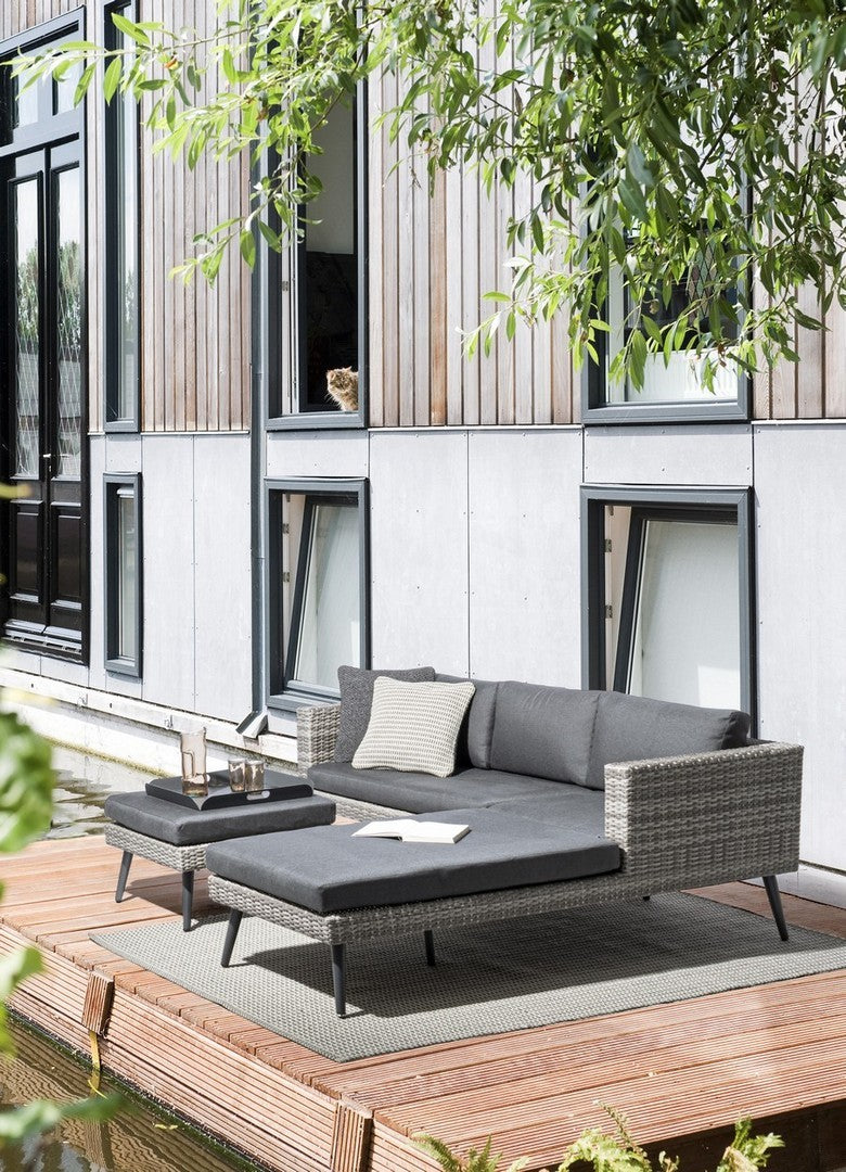 Salon d'angle "Marlow" avec pouf et canapé, structure aluminium, pour extérieur