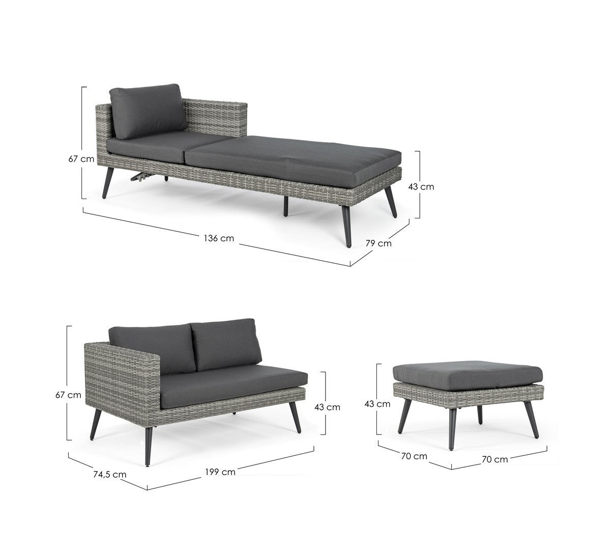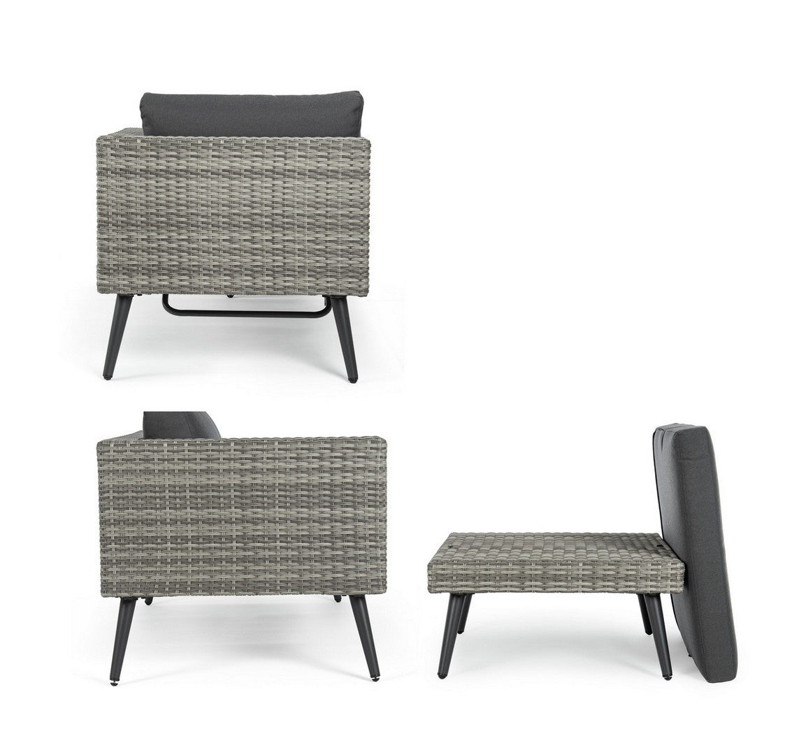 Le coin salon avec pouf et canapé est un produit conçu pour être utilisé dans les espaces extérieurs tels que les jardins, les terrasses ou les balcons. Sa structure est en aluminium thermolaqué (polyester), ce qui garantit une bonne résistance aux intempéries et à la corrosion.