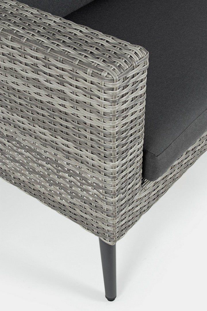 Le design se caractérise par un tissage semi-rond en fibres synthétiques, qui donne un aspect élégant et moderne au salon.