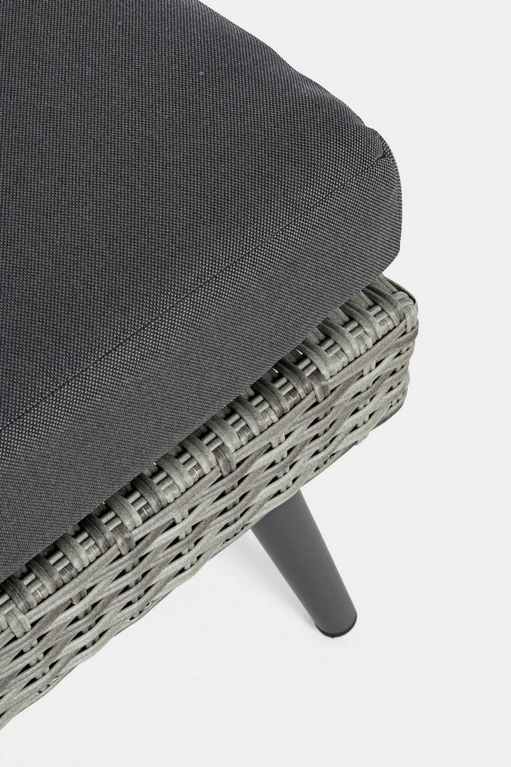Les coussins d'assise et de dossier sont fabriqués en tissu Olefin, un matériau résistant et durable au soleil et aux intempéries, composé à 100 % de polypropylène. De plus, les coussins sont déhoussables, ce qui facilite leur nettoyage et leur entretien.