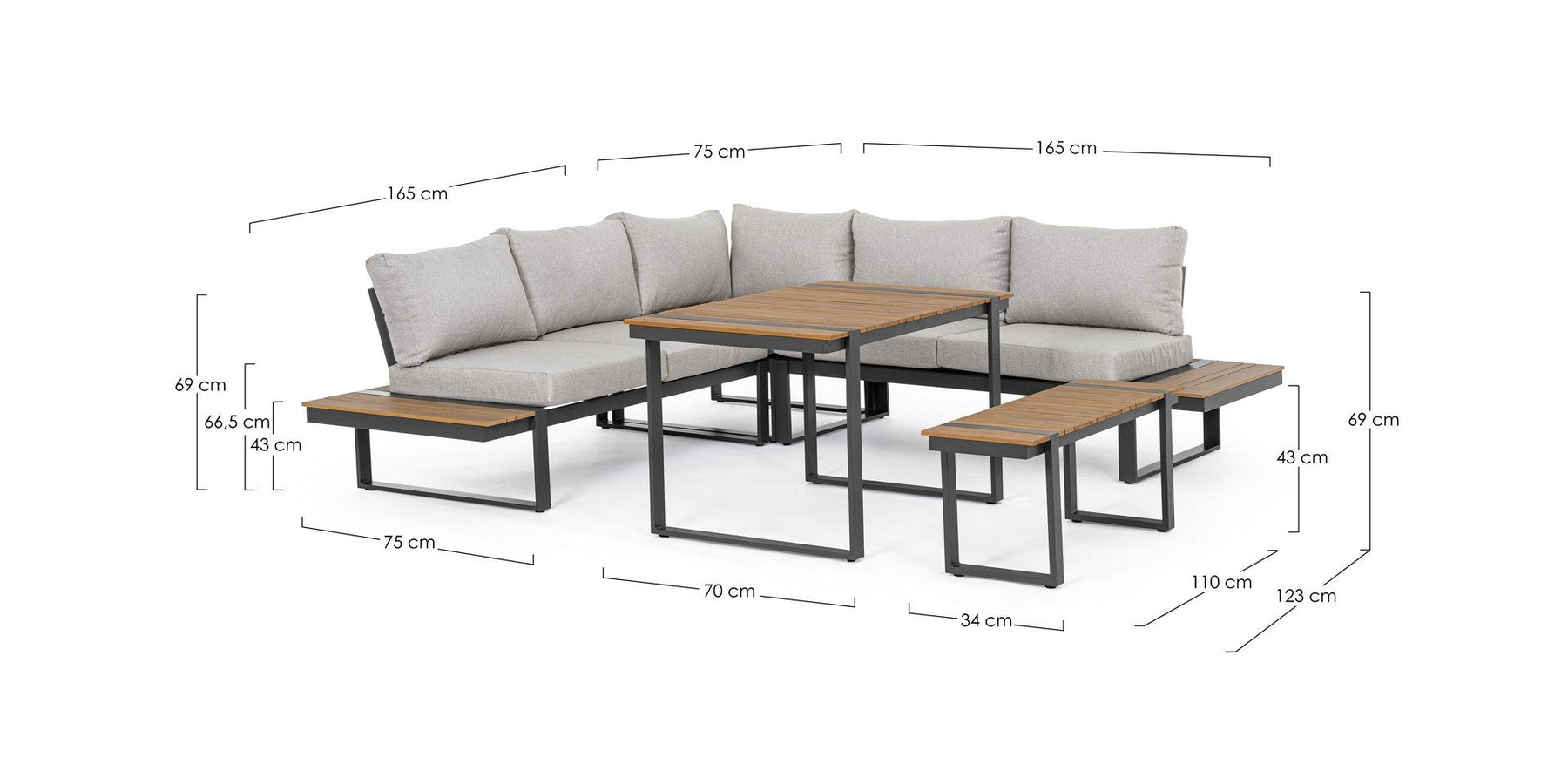 Grâce à sa structure angulaire, le salon « Sven » offre un grand espace de détente et de convivialité, et est parfait pour créer un coin salon extérieur.