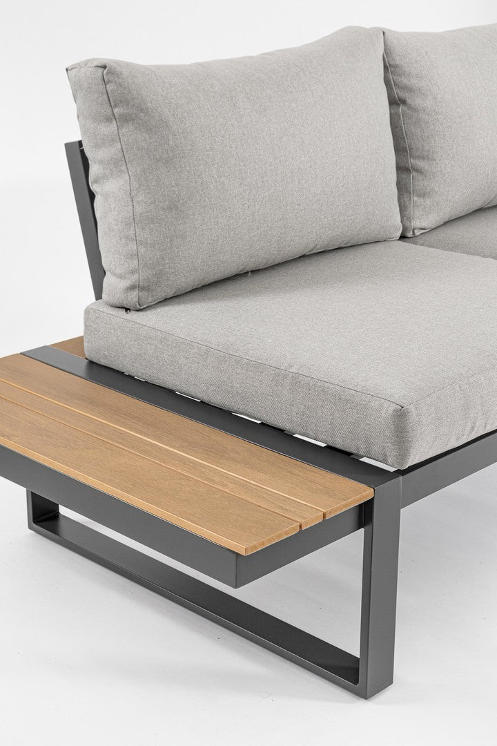 Prix régulier €3.124,90 Prix réduit €2.499,90Le salon d'angle "Sven" est un produit au design moderne, avec une structure principale en aluminium thermolaqué finition polyester anthracite.