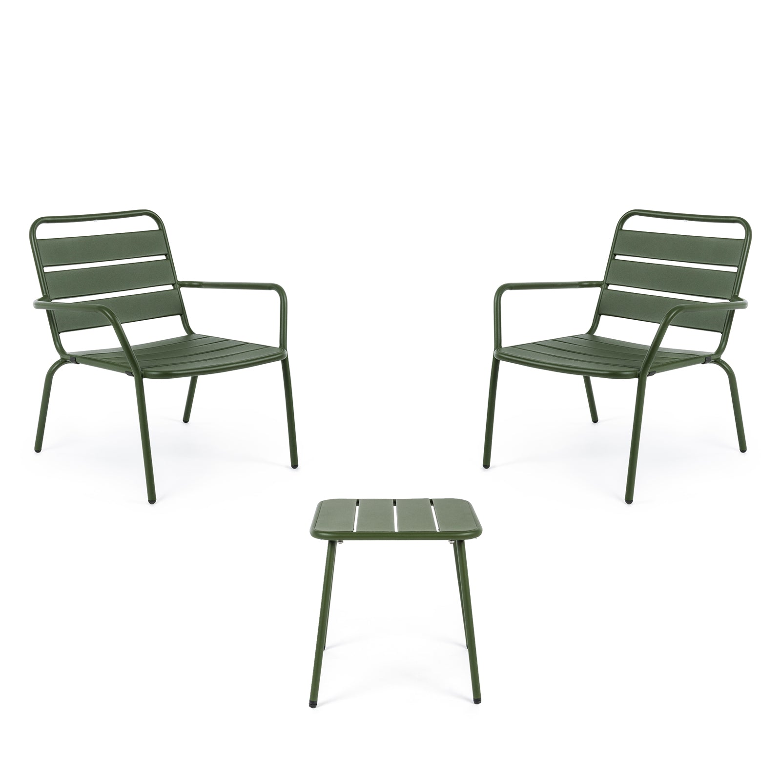 L'ensemble peut accueillir jusqu'à 2 personnes, avec 2 fauteuils et une table pratique.