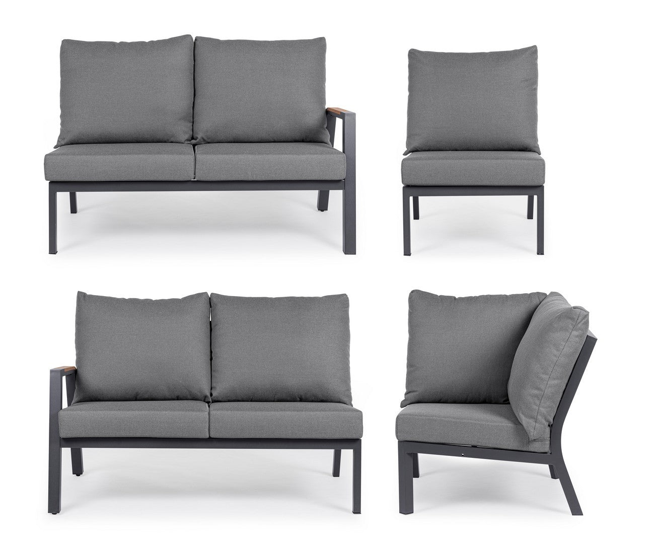 Le salon est complété par des coussins amovibles en tissu Olefin, un matériau résistant aux taches et à l'usure.