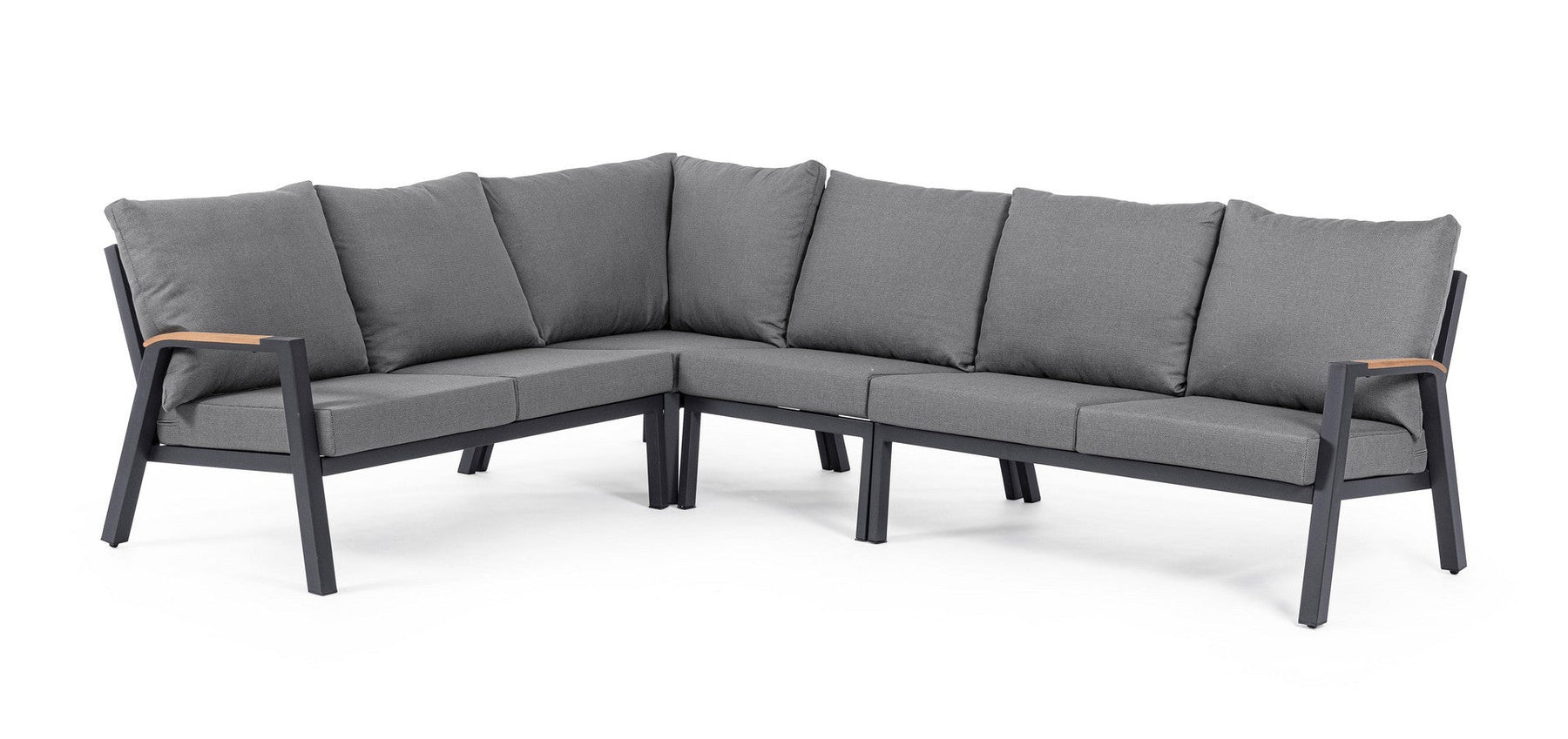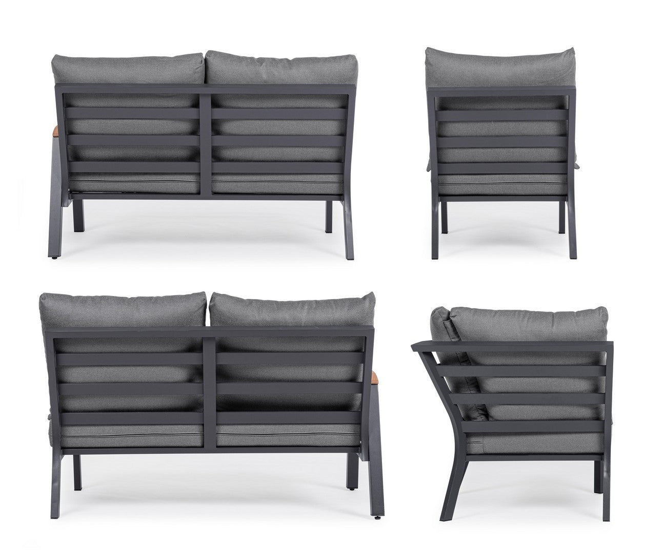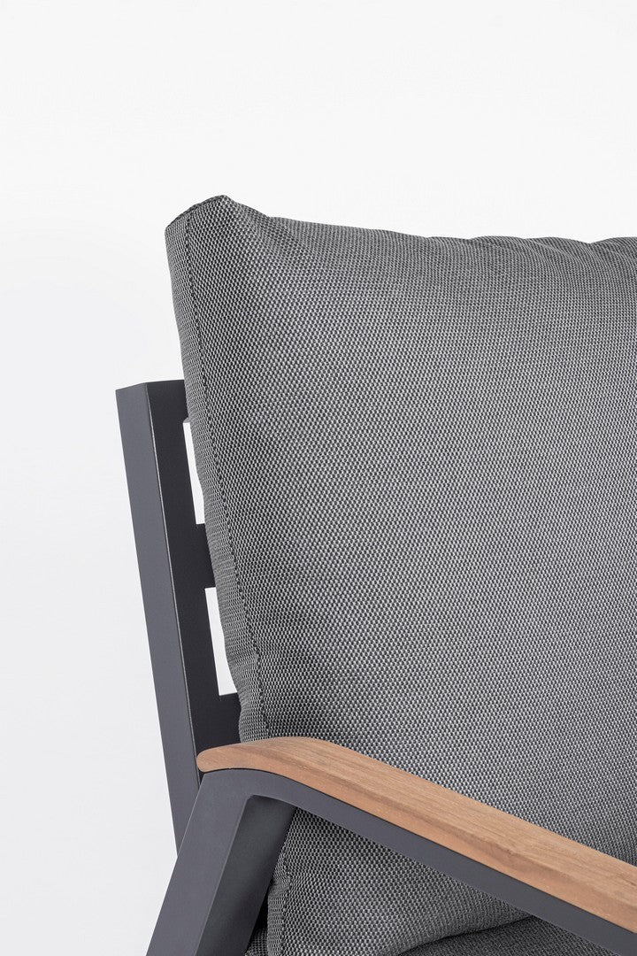 La structure est caractérisée par des accoudoirs avec insert en teck, qui donnent une touche d'élégance et de chaleur au produit.