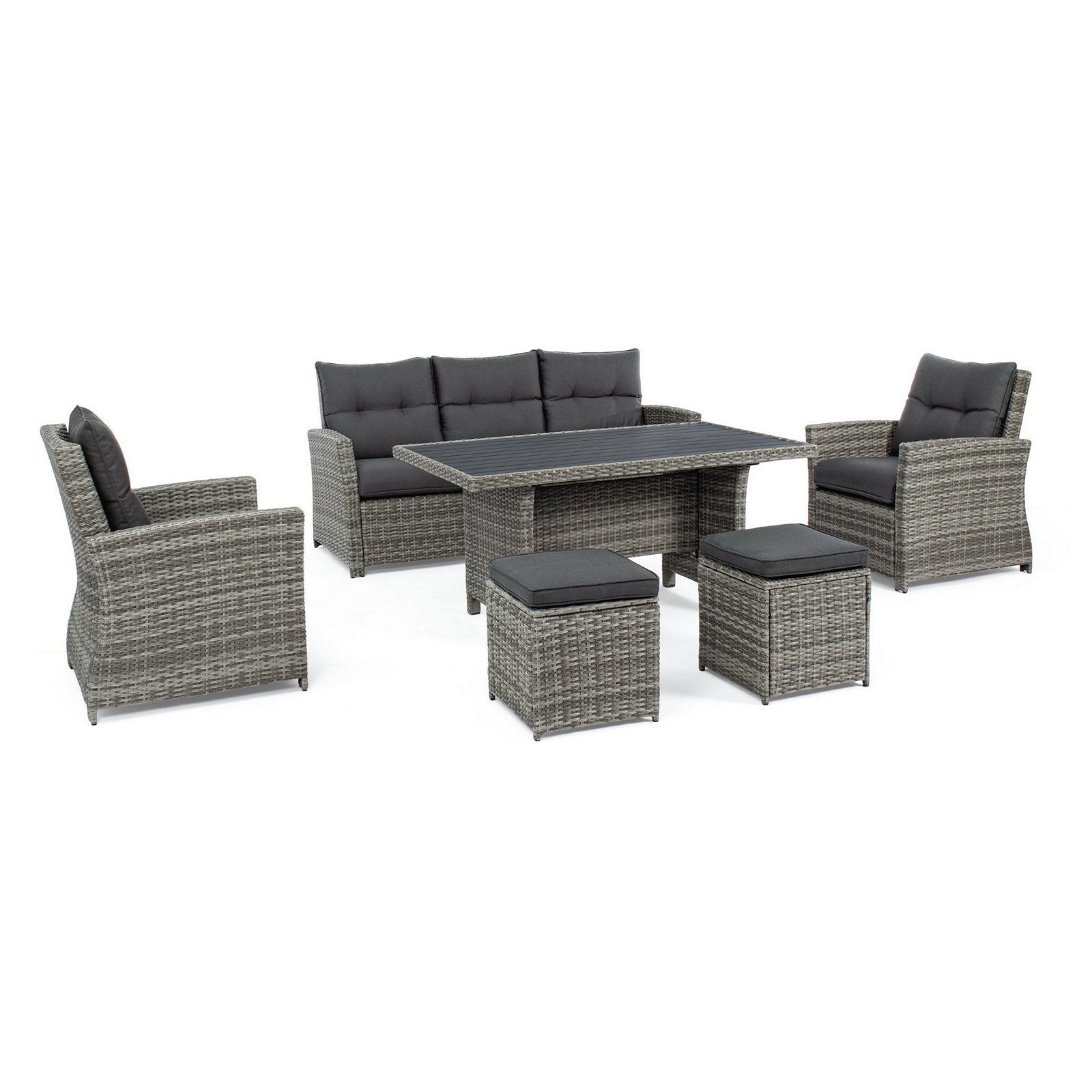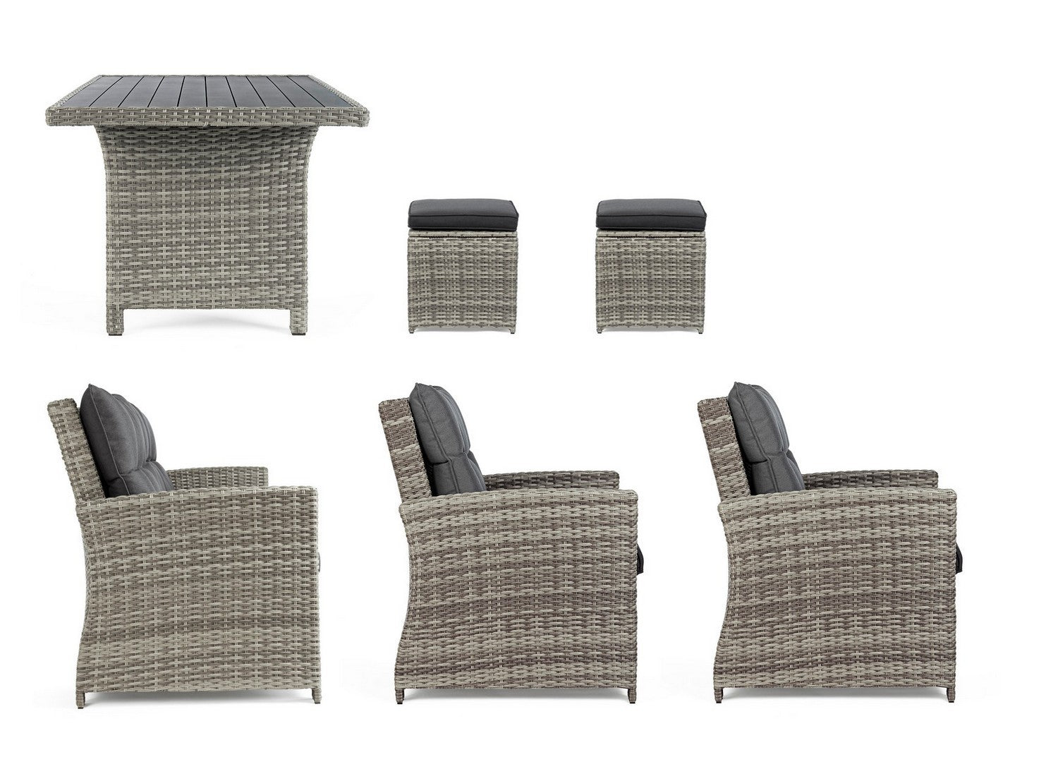 Prix régulier €2.249,90 Prix réduit €2.099,90Le produit est un salon d'extérieur composé de fauteuils, d'un canapé, d'un pouf et d'une table basse. Le cadre est en aluminium thermolaqué avec une finition en polyester pour garantir durabilité et résistance aux intempéries. Le tissage semi-rond en fibres synthétiques donne un aspect élégant et moderne au salon, tout en garantissant durabilité et résistance dans le temps.