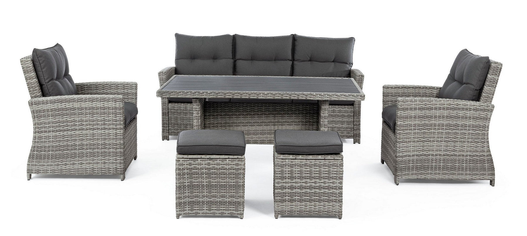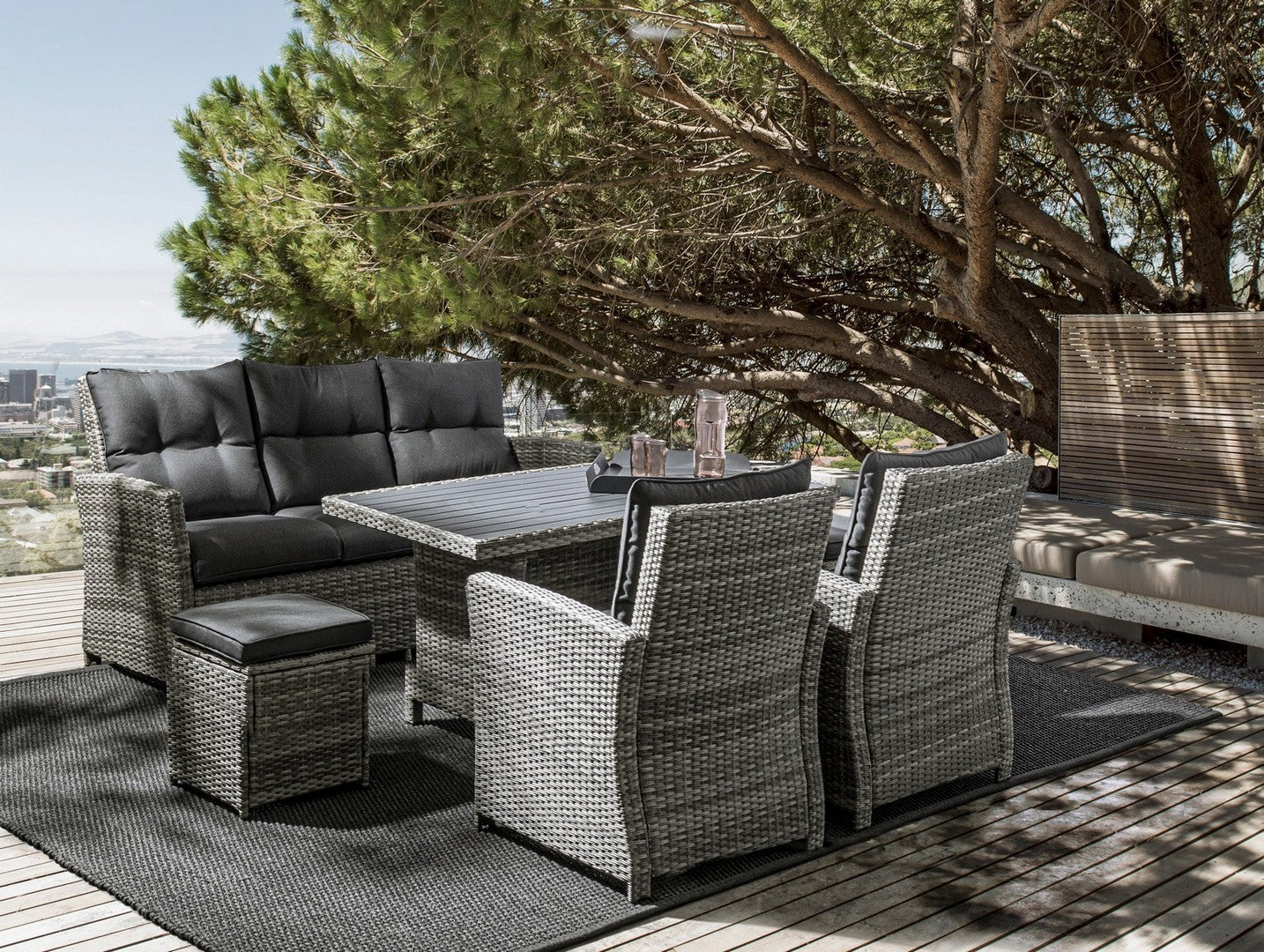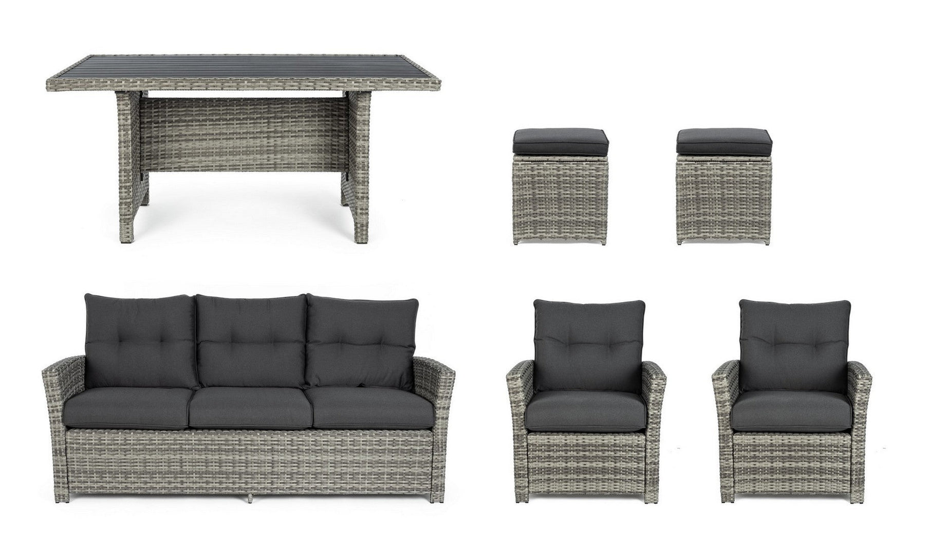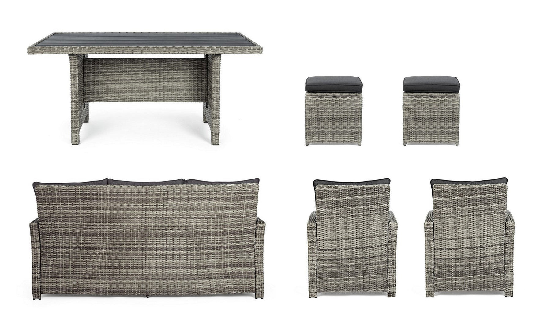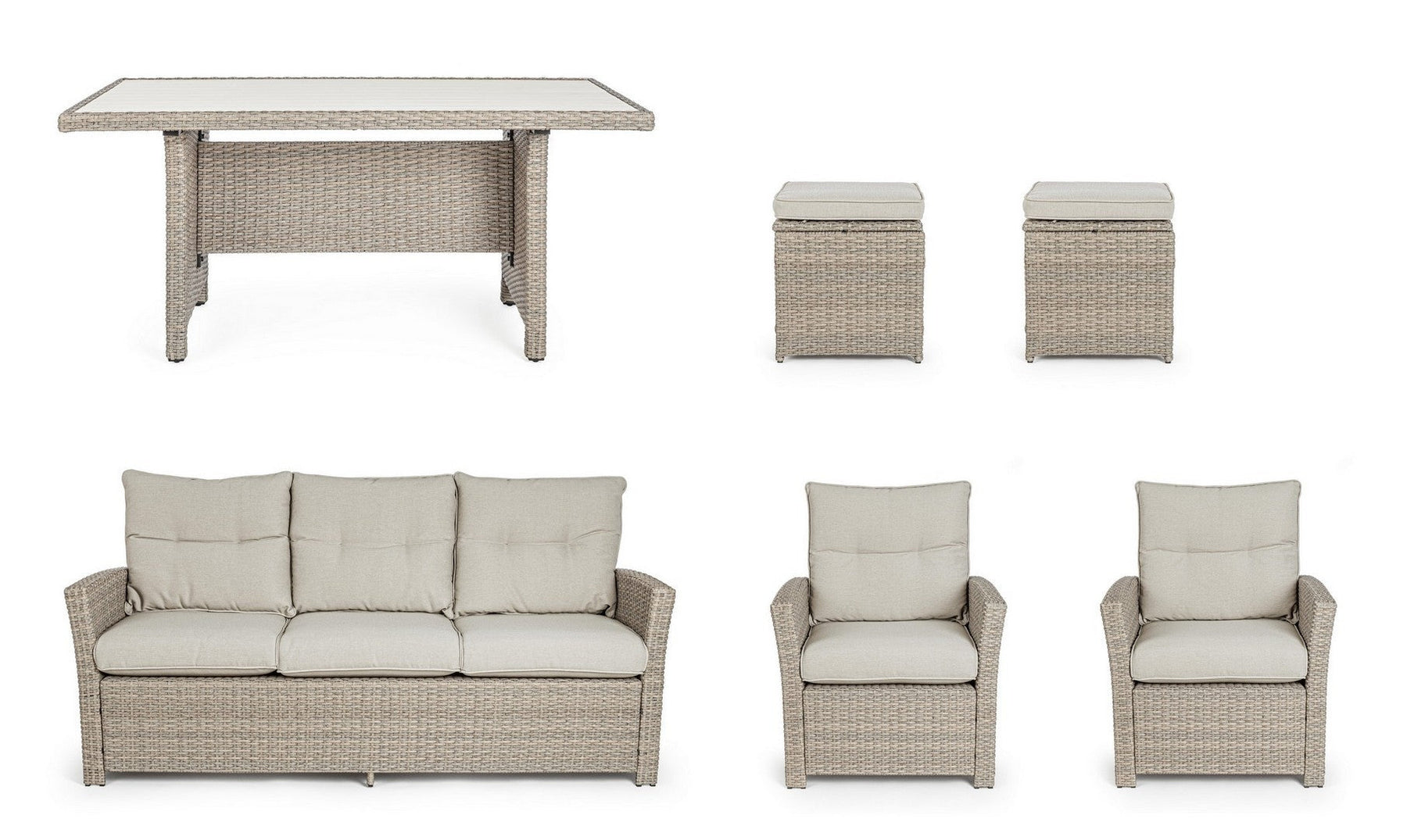 Dans l’ensemble, ce salon extérieur est idéal pour créer un espace de détente extérieur afin de profiter du temps libre en famille et entre amis. Grâce à sa structure résistante et ses coussins amovibles, le salon offre un maximum de confort et de résistance aux agents atmosphériques.