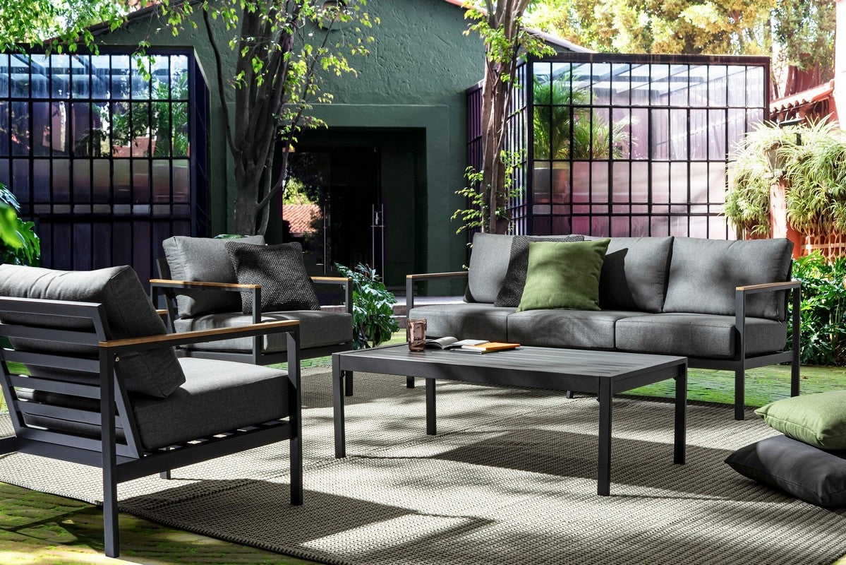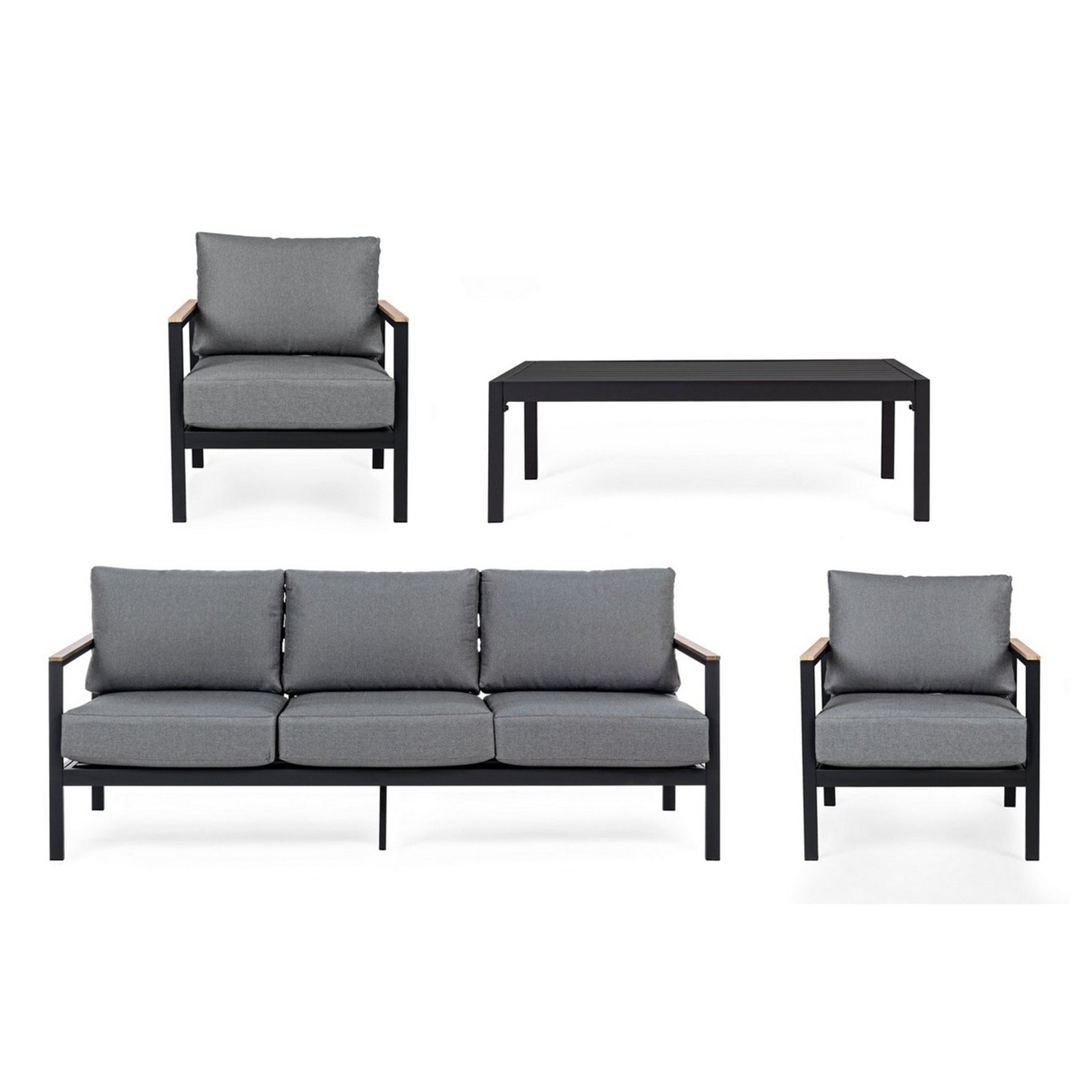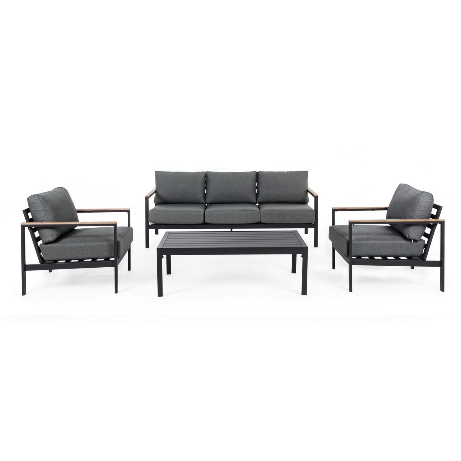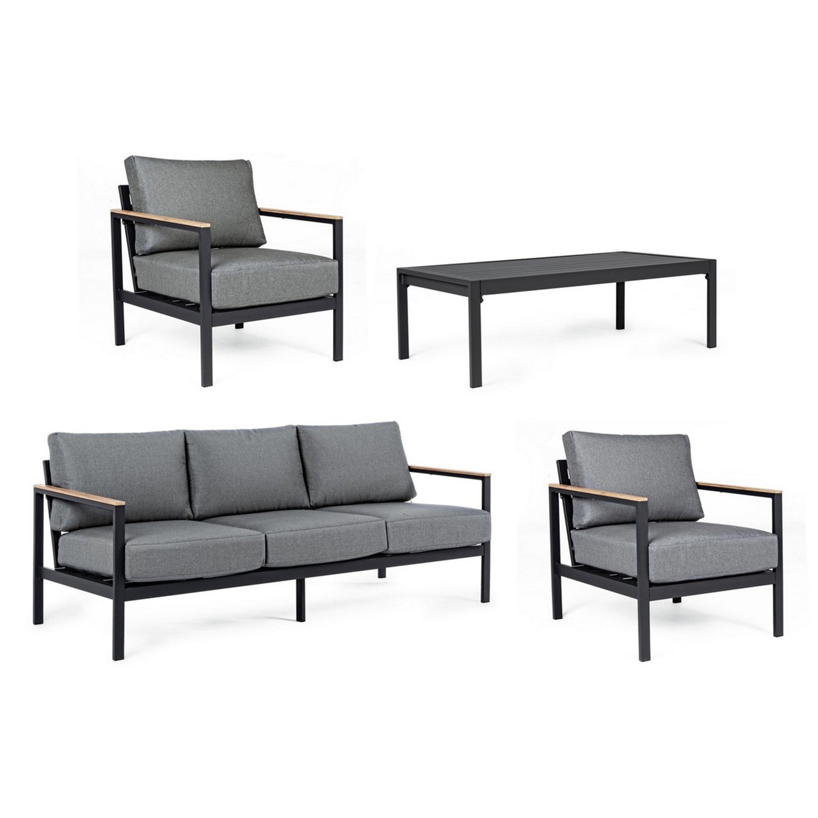 Lounge en aluminium peint anthracite mat avec coussins d'extérieur rembourrés gris très confortables.Les dimensions généreuses le rendent très confortable à utiliser.Grande table basse pour mille usages du quotidien.Caractéristiques: - Structure en aluminium thermolaqué époxy
