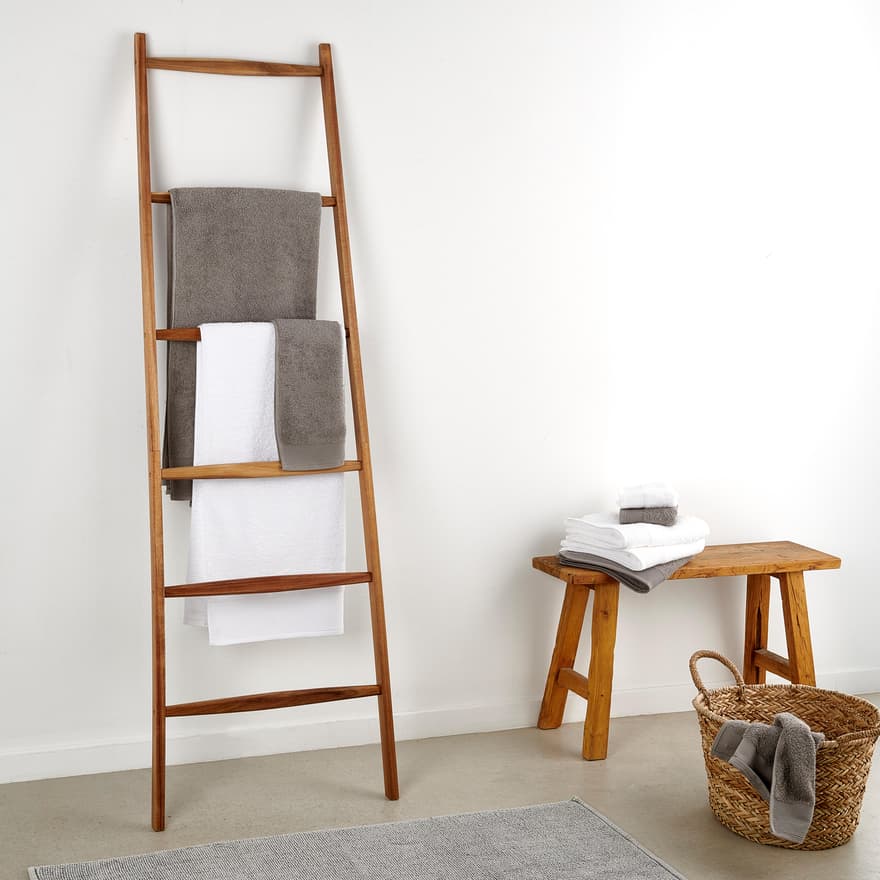 Grâce à sa structure en gradins, cette échelle décorative peut contenir plusieurs serviettes en même temps.