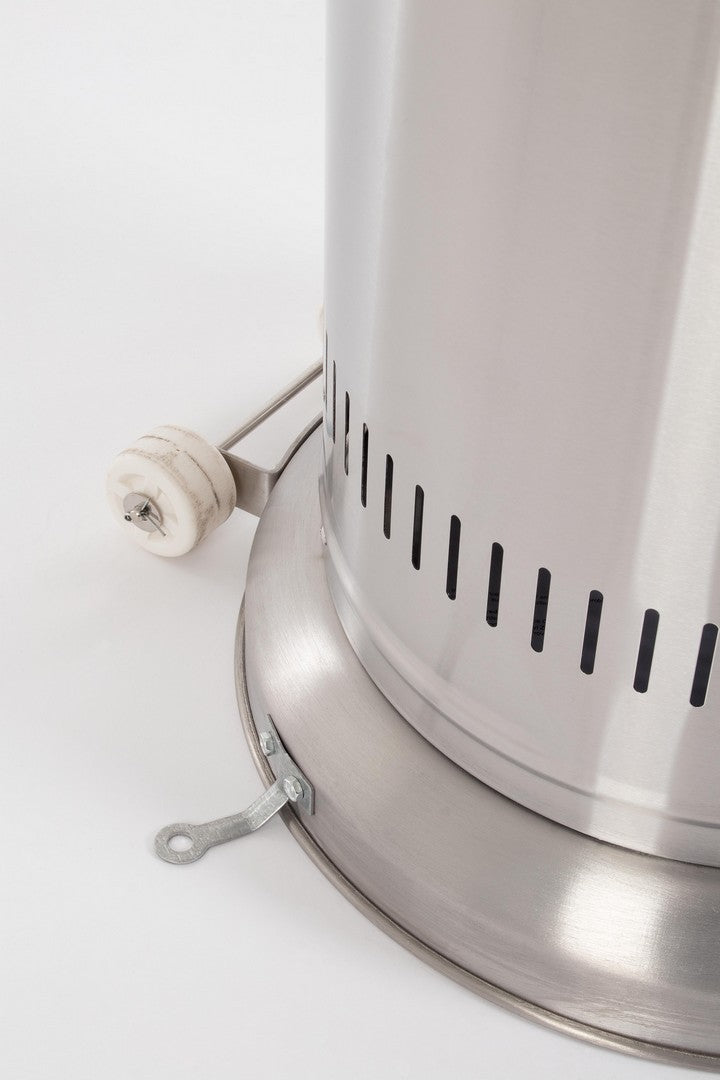 Ce chauffe-terrasse est capable de chauffer une surface d'environ 10 m2. Il est équipé de roulettes pour faciliter son déplacement. Il est destiné à un usage domestique et extérieur uniquement et nécessite un assemblage avant utilisation.