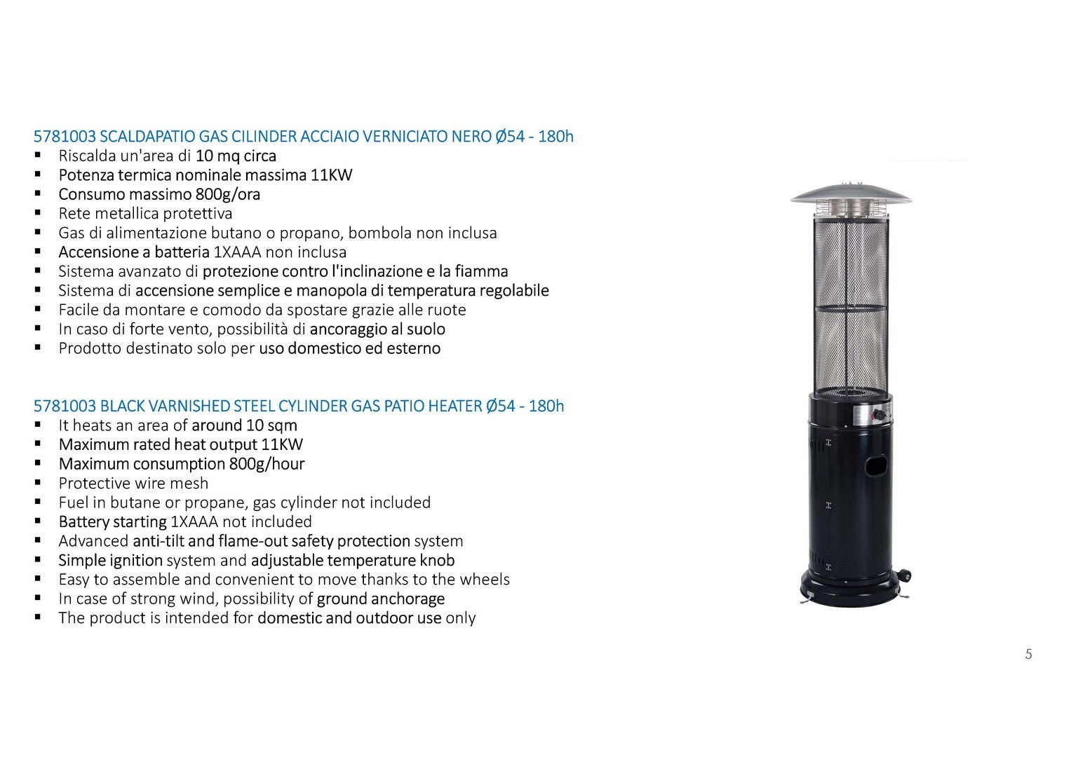 Chauffage de terrasse à gaz à cylindre en acier peint en noir, pour extérieur, Ø54 x 180h cm