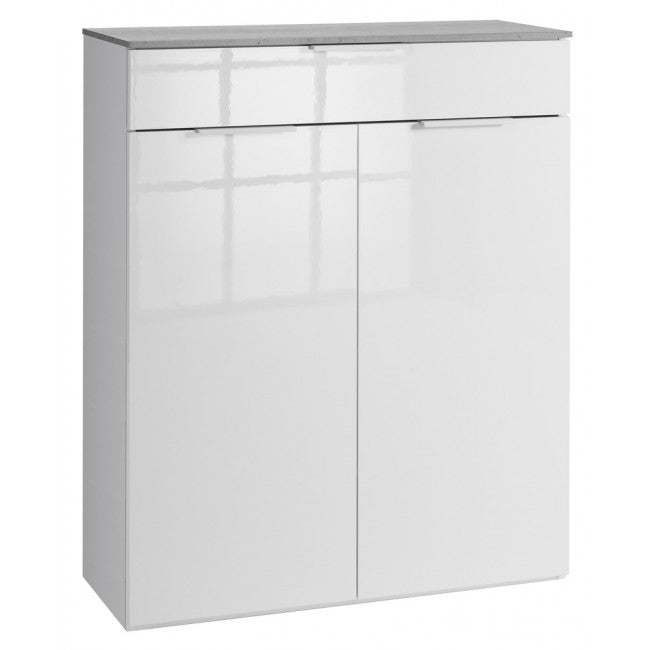 Prix régulier €249,90 Prix réduit €218,90Meuble de salon de la ligne Galaverna, blanc brillant avec plateau en béton.