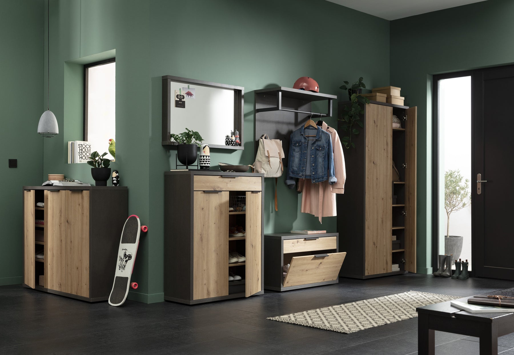 Sa structure en bois élégante et robuste et ses deux étagères en chêne naturel rendent ce meuble à chaussures adapté aussi bien à la chambre qu'au salon.