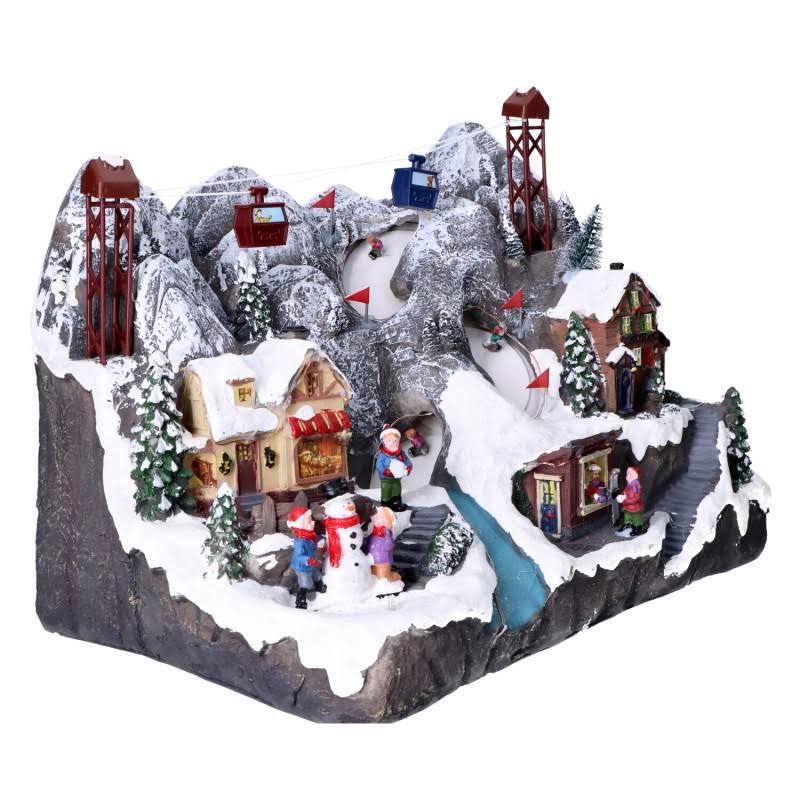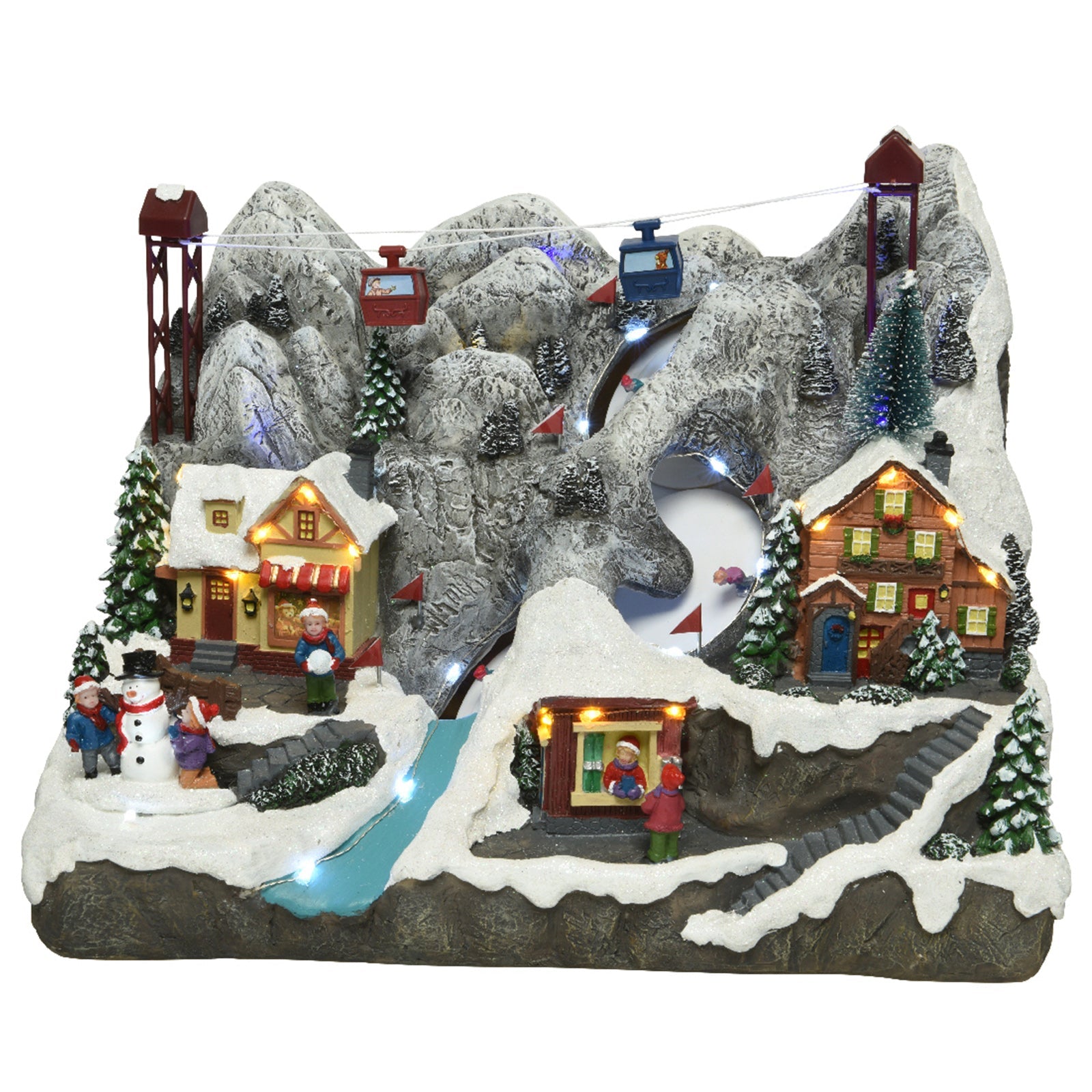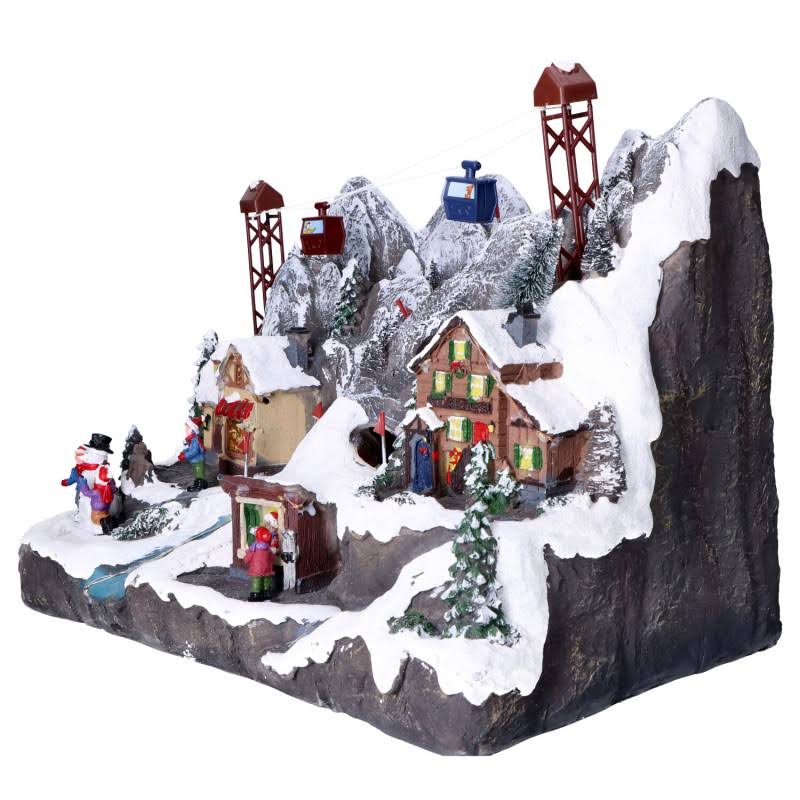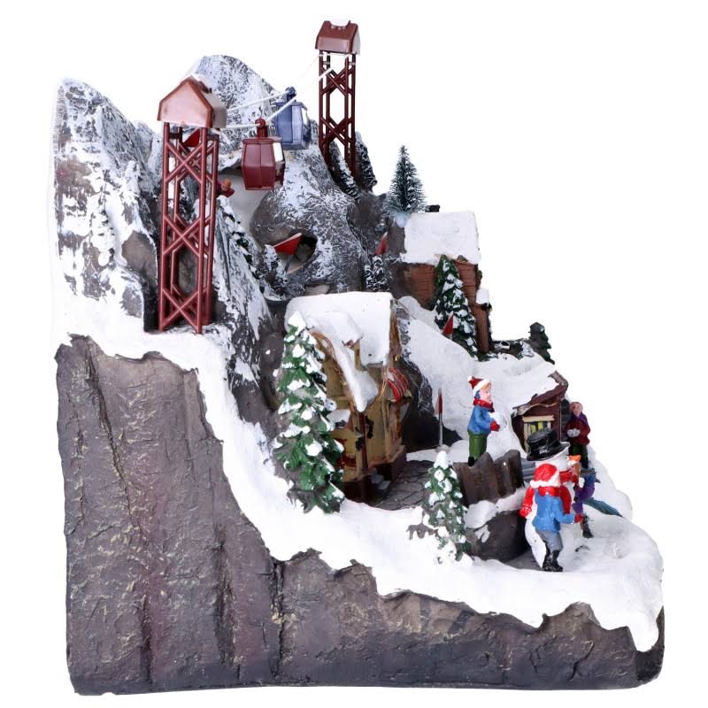 Scène animée LED Paysage de Noël avec cascade et téléphérique avec lumières 28,5 cm