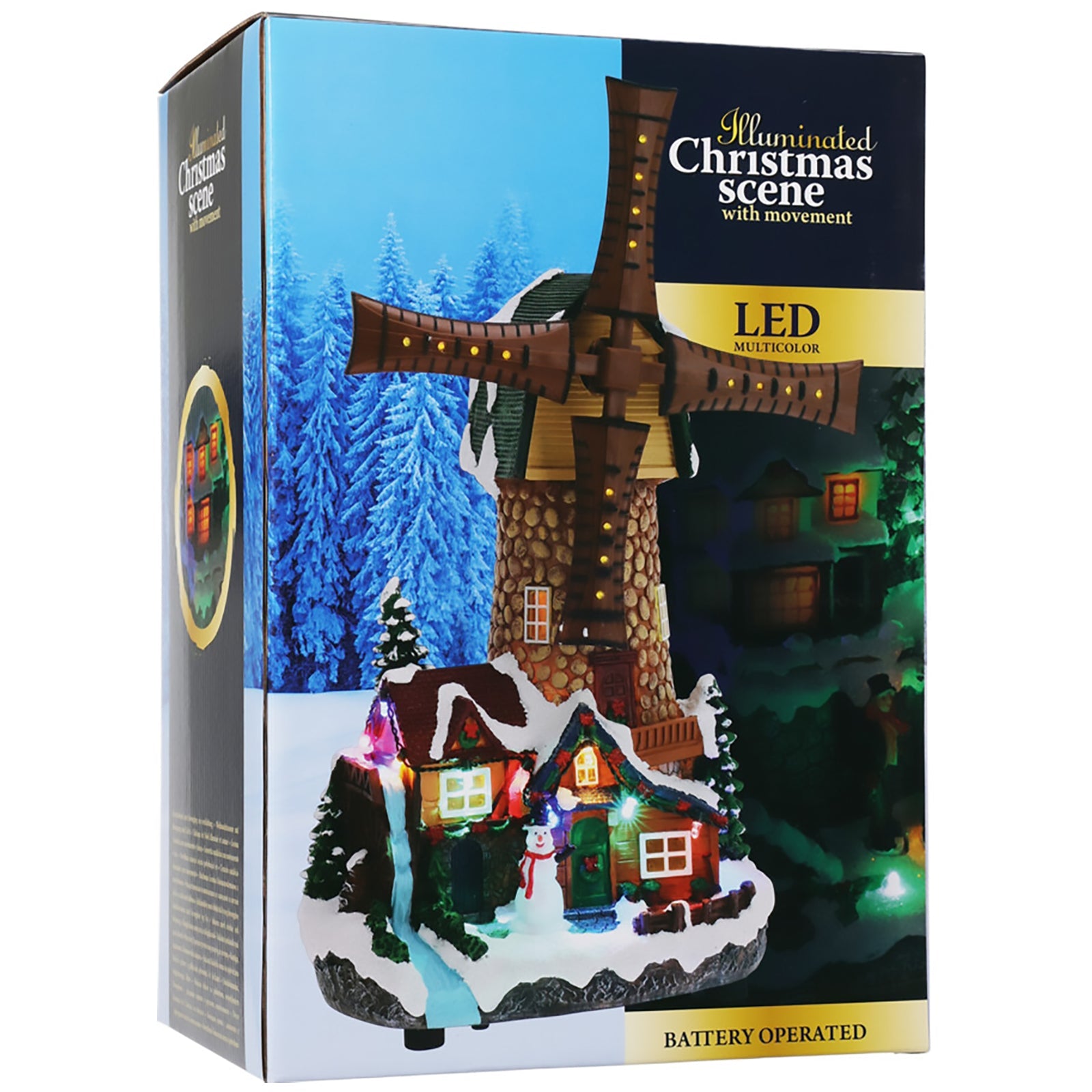 Scène animée de moulin à vent, avec LED et mouvements, décoration pour village de Noël