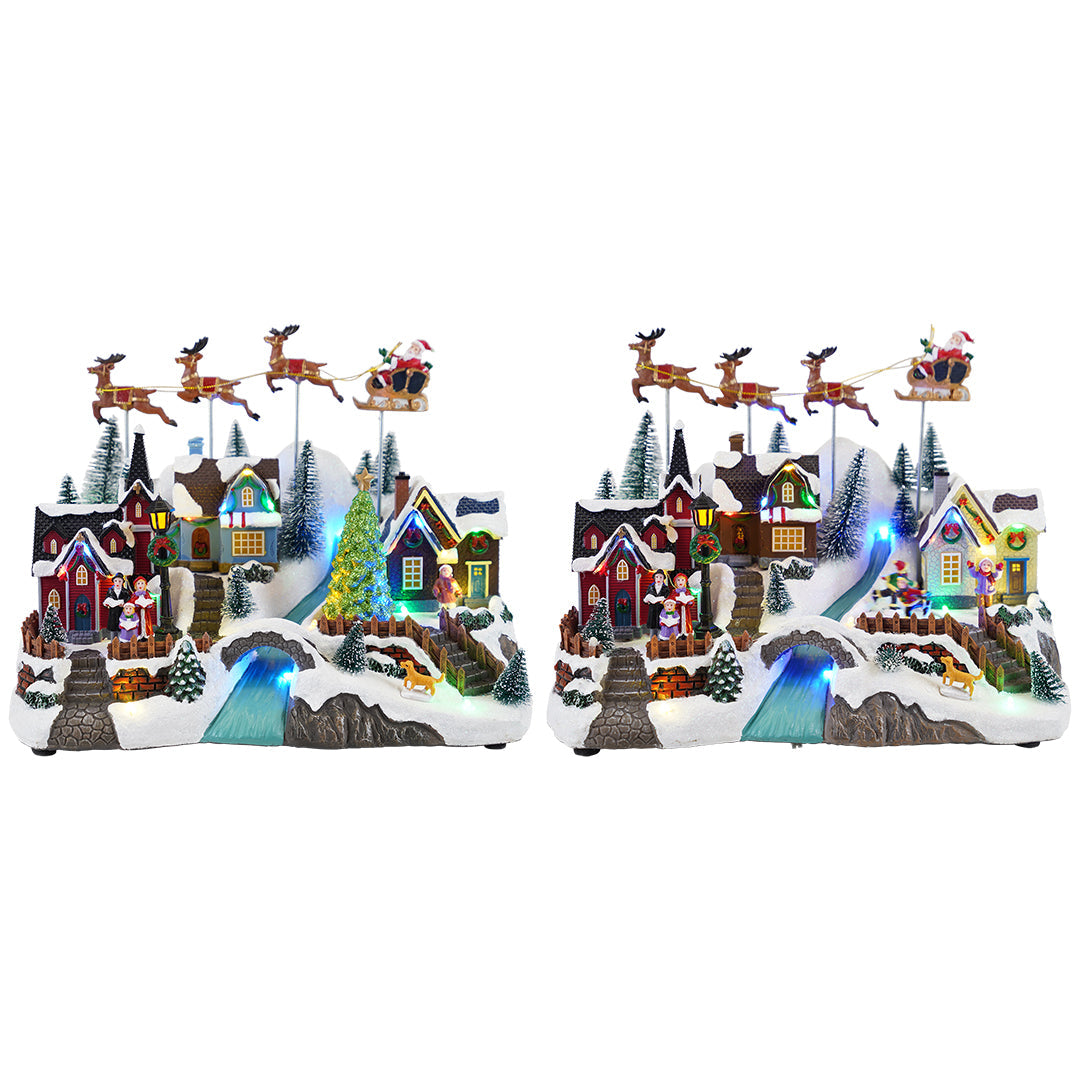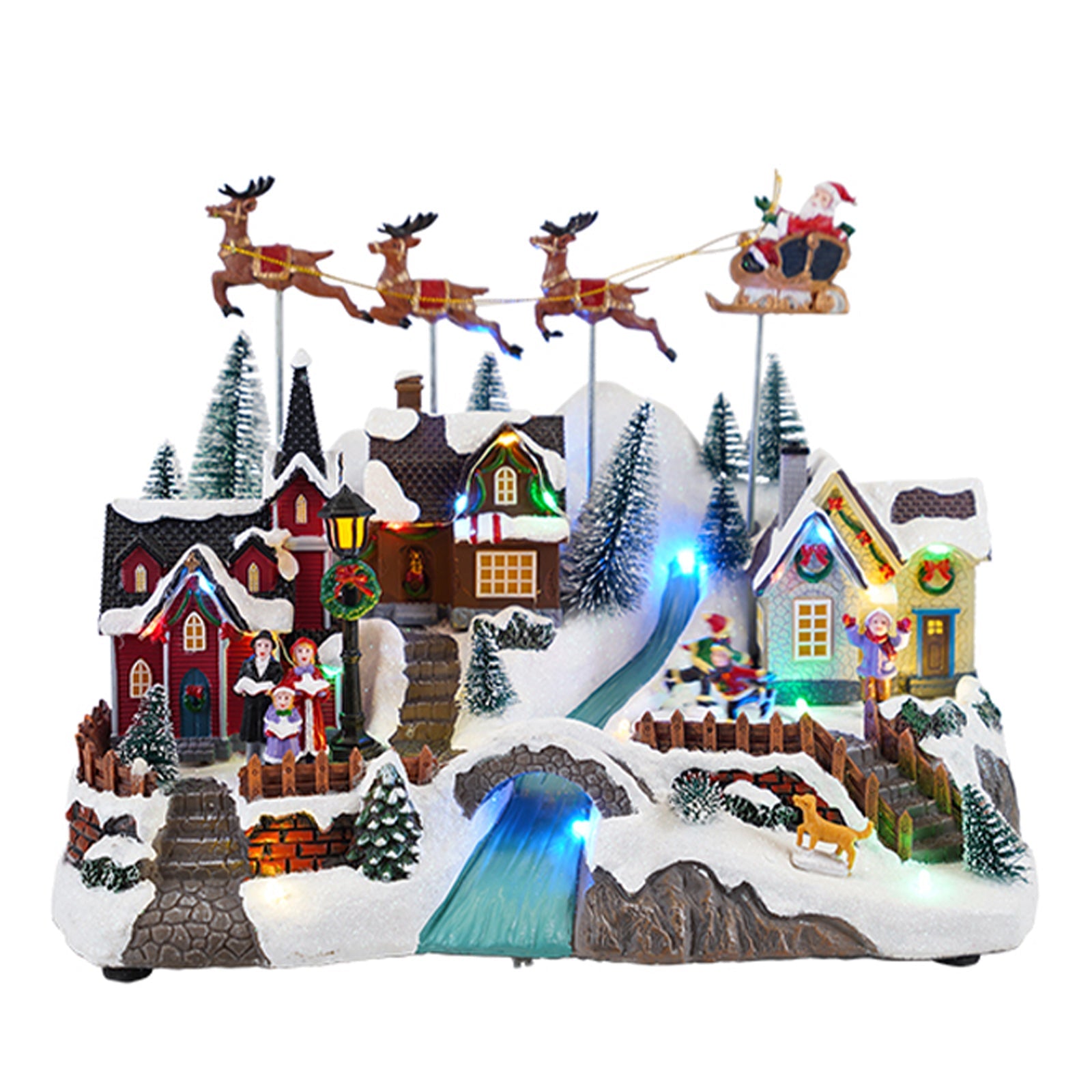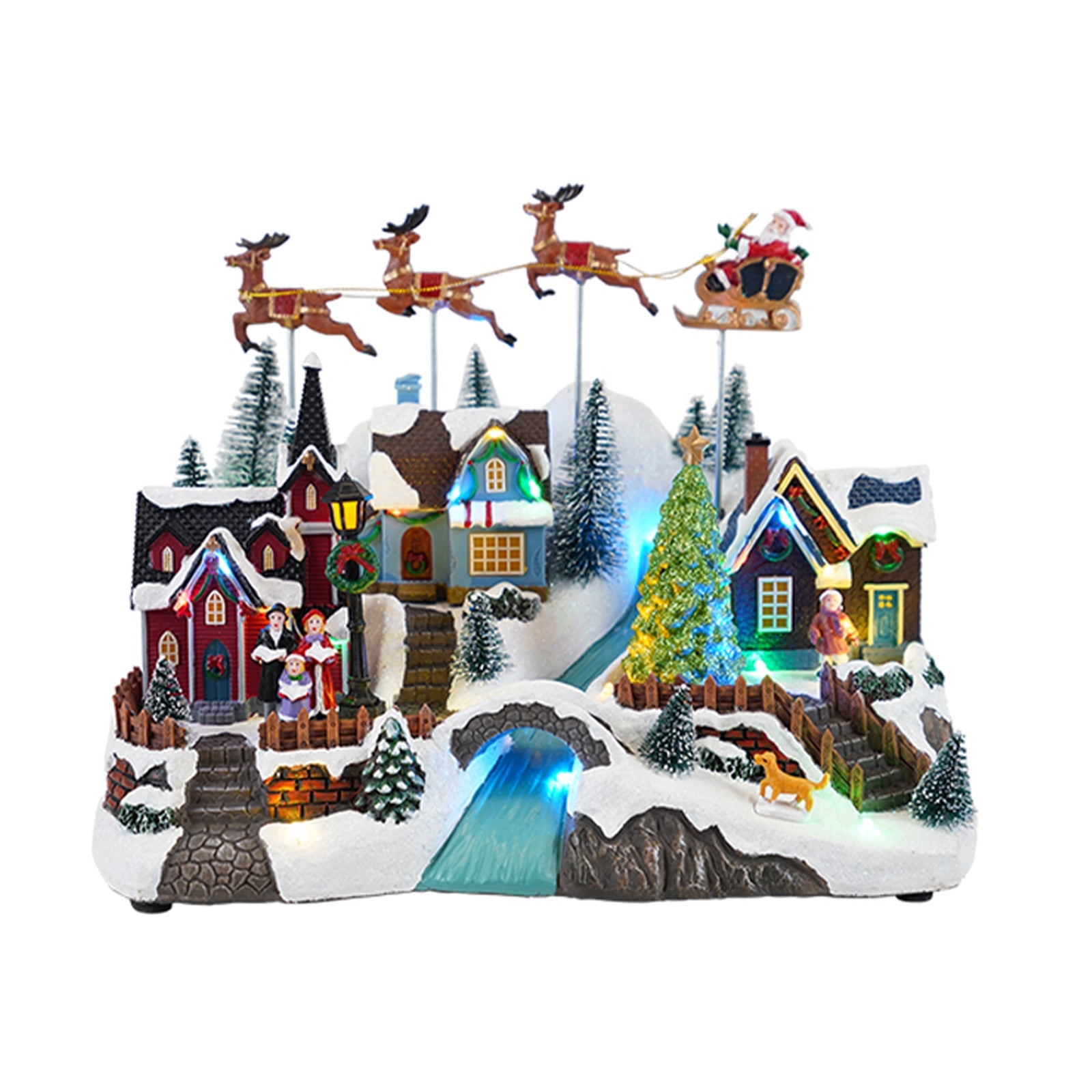 Scène animée pour village de Noël avec LED et musique pour décoration intérieure