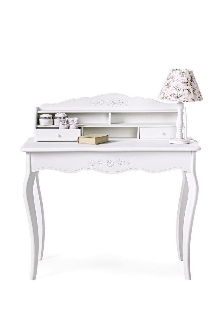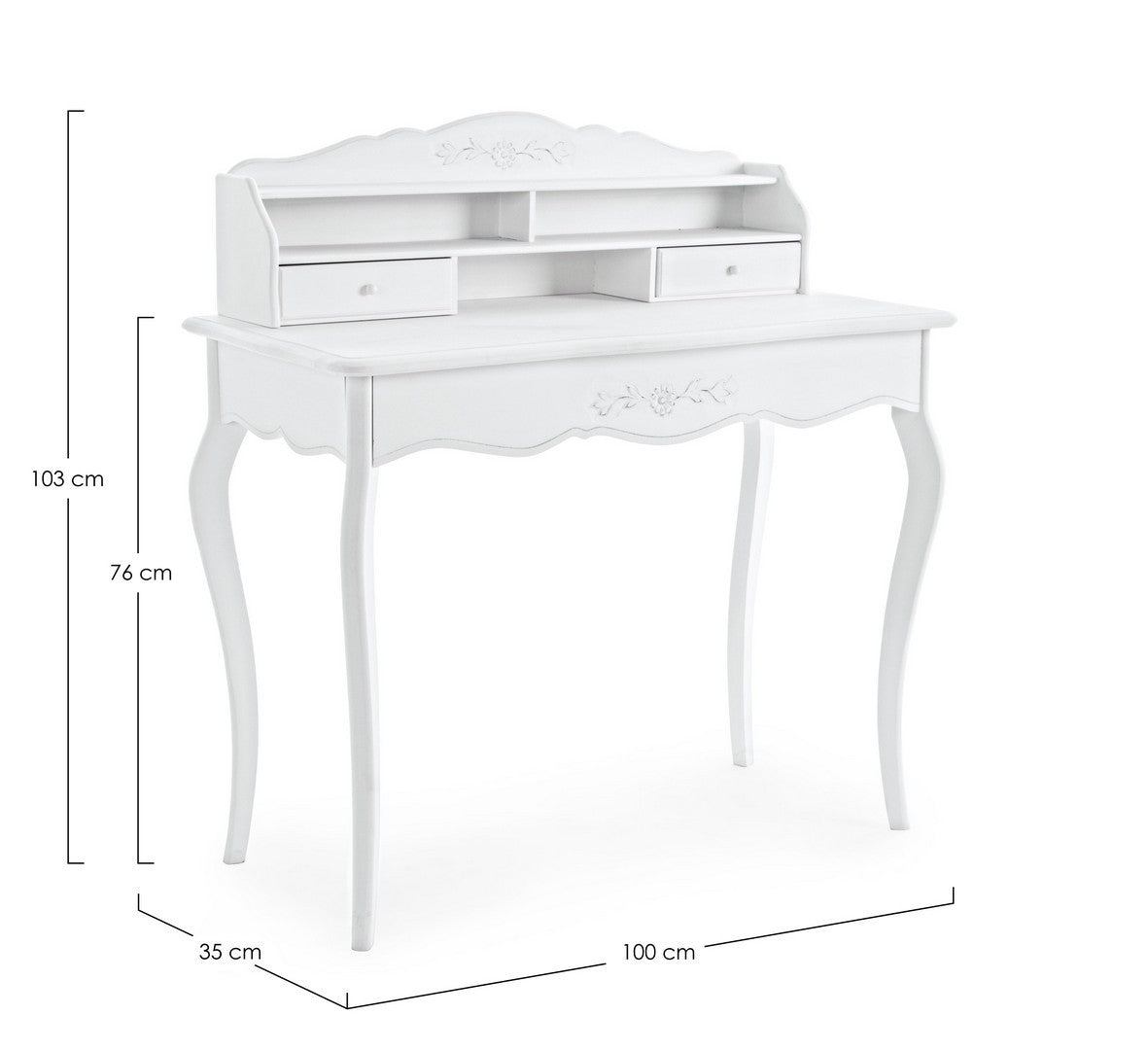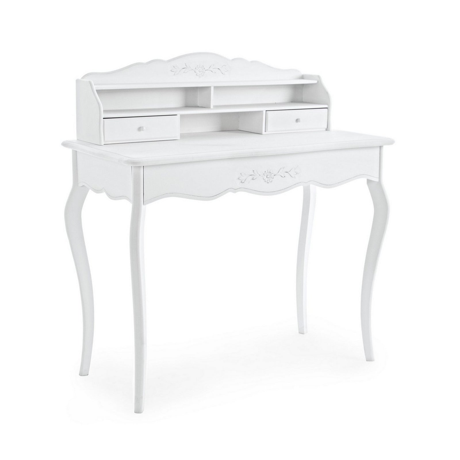 Bureau "Daisy" blanc, à 2 tiroirs, structure en bois, style vintage, 100 x 45 x 103 cm