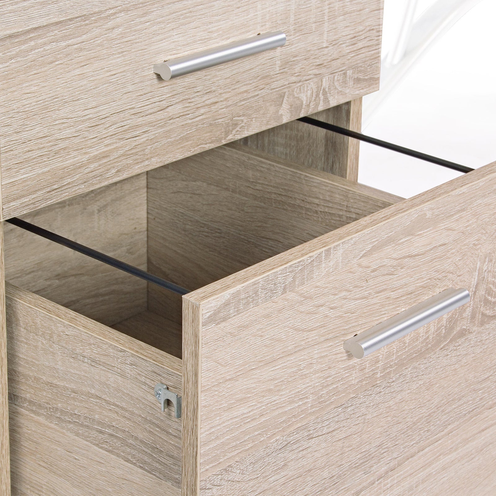 - Commode en MDF recouvert de papier mélaminé imitation bois.