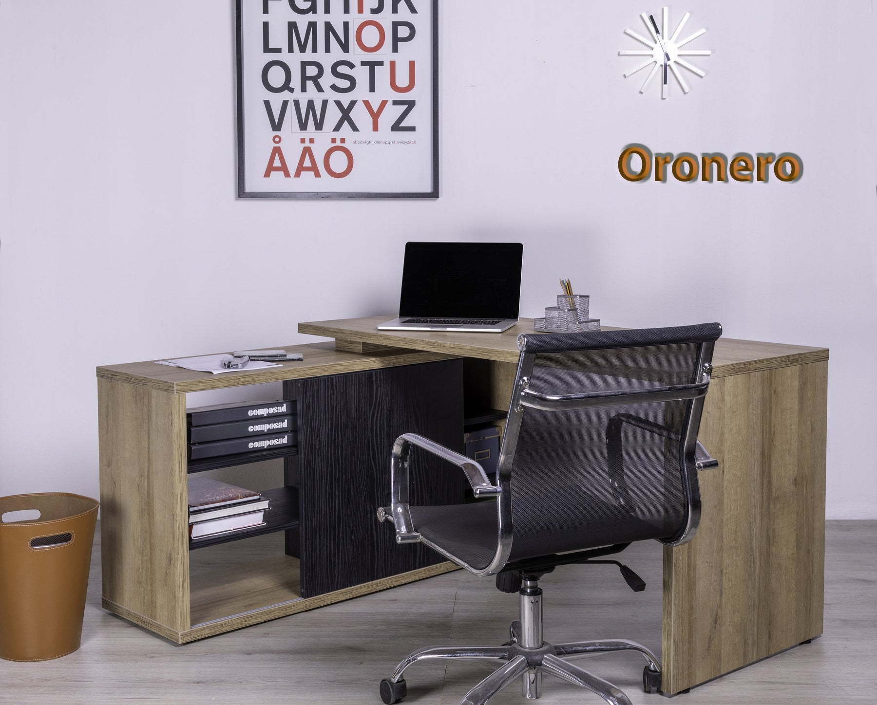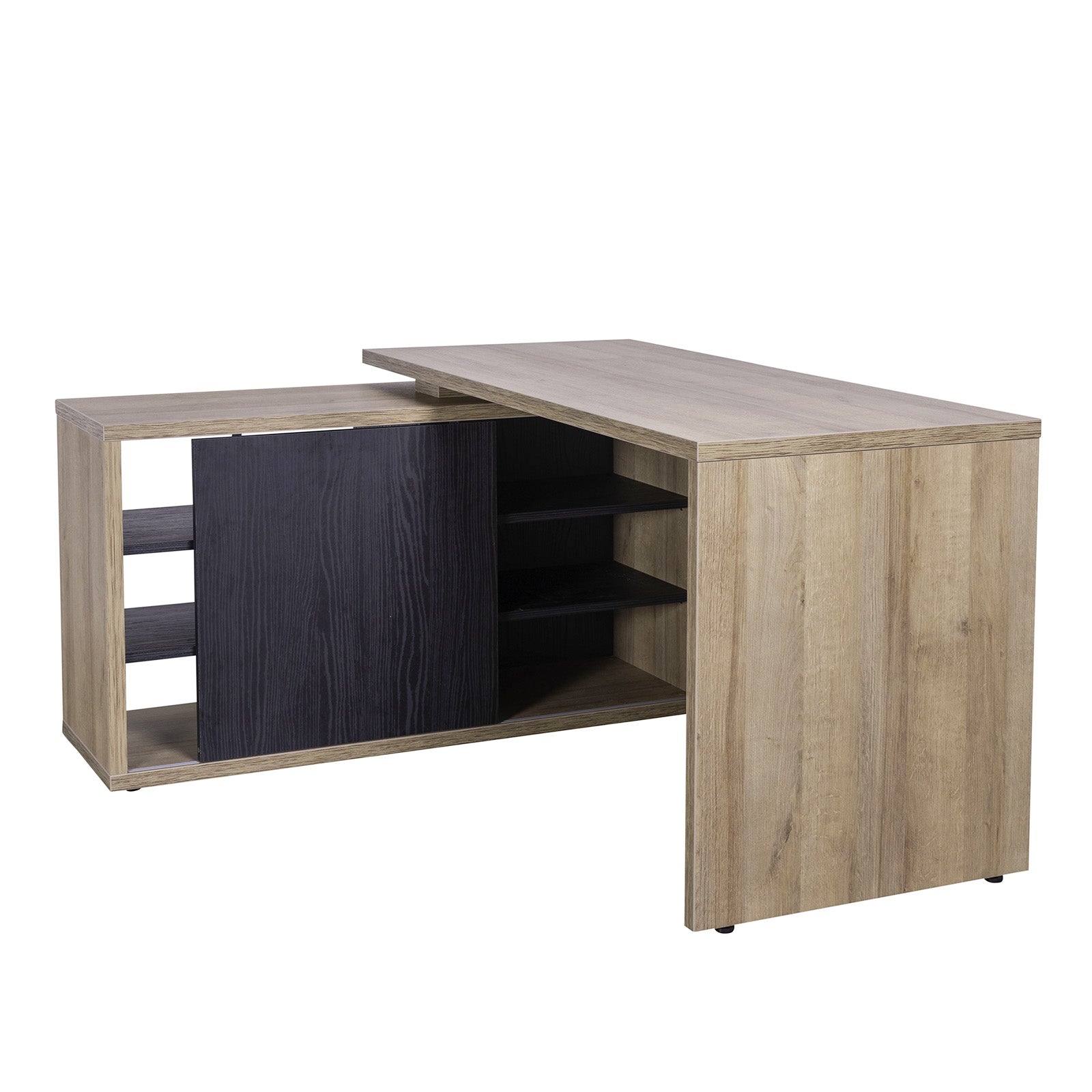 Bureau d'angle et bureau de chambre avec commode 150 cm Chêne et Noir